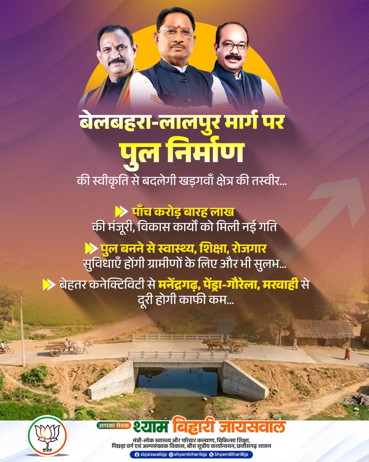 माननीय मुख्यमंत्री श्री विष्णुदेव साय जी, माननीय उपमुख्यमंत्री श्री अरुण साव जी एवं माननीय स्वास्थ्य मंत्री श्री श्याम बिहारी जायसवाल जी के प्रति क्षेत्र की जनता हार्दिक आभार व्यक्त करती है, जिनके नेतृत्व में यह स्वीकृति संभव हो सकी।