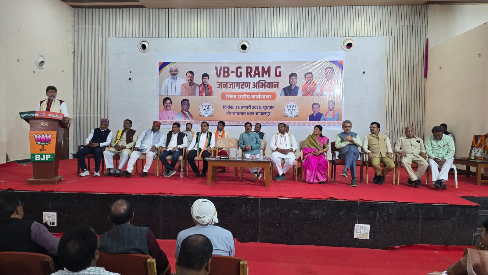 जगदलपुर। भारतीय जनता पार्टी द्वारा बुधवार को स्थानीय वीर सावरकर भवन में विकसित भारत जी-राम-जी जनजागरण अभियान को लेकर जिला स्तरीय कार्यशाला आयोजन किया गया। जिसमें भाजपा प्रदेश अध्यक्ष व विधायक किरण सिंह देव, भाजपा बस्तर संभाग प्रभारी व वीबी जी-राम-जी जनजागरण अभियान के प्रदेश संयोजक यशवंत जैन एवं भाजपा प्रदेश उपाध्यक्ष व भाजपा बस्तर जिला प्रभारी सतीश लाटिया विशेष रूप से उपस्थित थे।