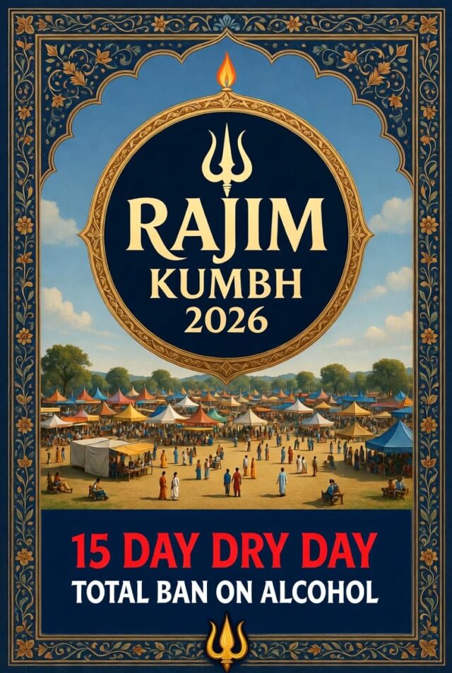 गरियाबंद, 30 जनवरी 2026। छत्तीसगढ़ शासन ने राजिम कुंभ (कल्प) मेला 2026 की धार्मिक गरिमा, कानून व्यवस्था और सामाजिक सौहार्द को बनाए रखने के लिए महत्वपूर्ण कदम उठाया है। वाणिज्यिक कर (आबकारी) विभाग के आदेशानुसार 1 फरवरी से 15 फरवरी 2026 (महाशिवरात्रि) तक राजिम कुंभ मेला क्षेत्र को शुष्क दिवस घोषित कर दिया गया है। यह निर्णय लाखों श्रद्धालुओं की सुरक्षा और मेला की पवित्रता सुनिश्चित करने के उद्देश्य से लिया गया है।