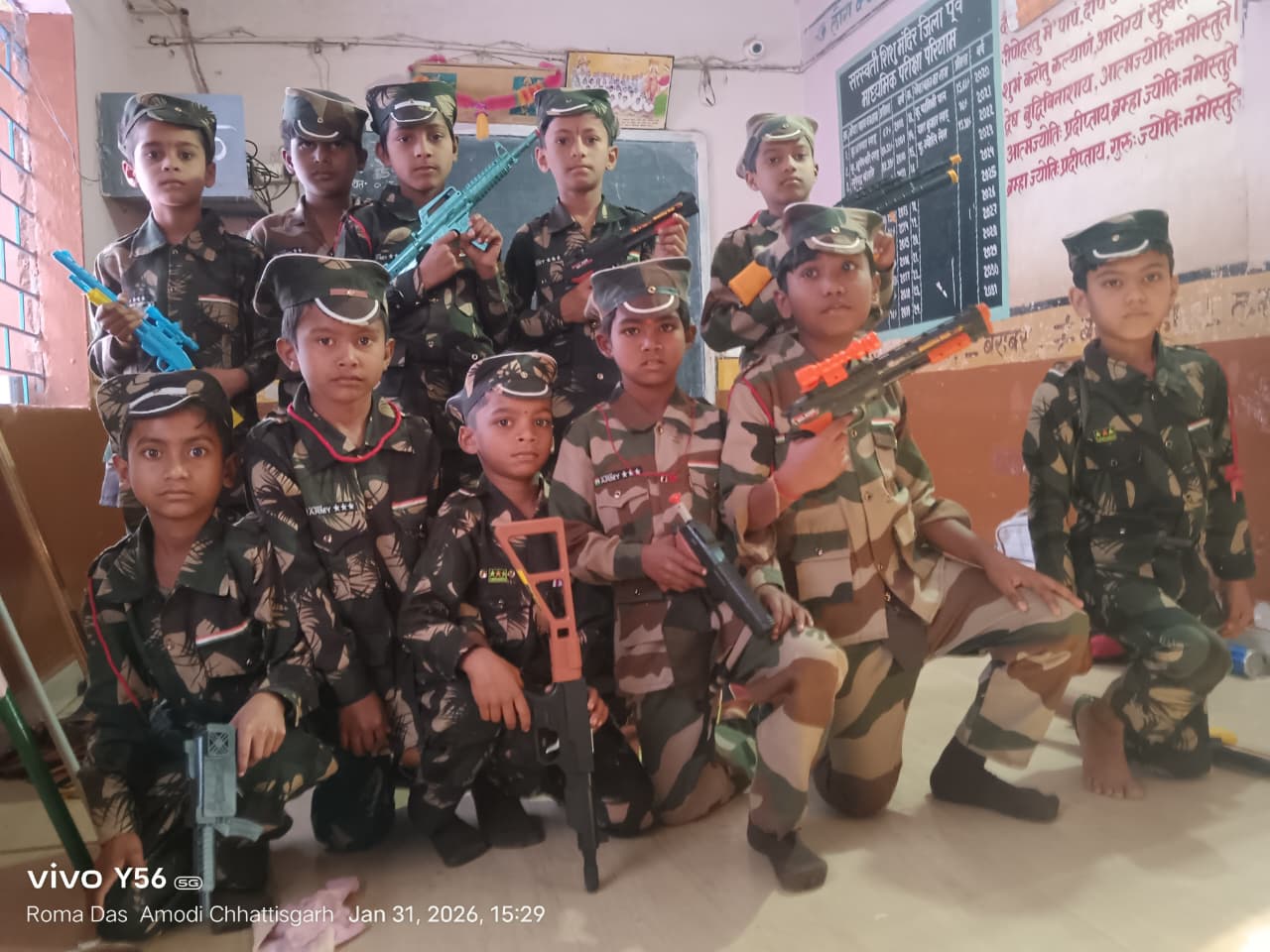 कोसरंगी,खरोरा(आरंग)- सरस्वती शिशु मंदिर पूर्व माध्यमिक विद्यालय कोसरंगी में रंगारंग संस्कृतिक कार्यक्रम सम्पन्न हुआ कार्यक्रम के मुख्य अतिथि श्री मति दामिनी राजू मिरझा (सरपंच), ग्राम पंचायत कोसरंगी थी, अध्यक्षता जिला ग्राम भारती रायपुर के अध्यक्ष श्री पुना राम वर्मा ने किया , विशिष्ट अतिथि श्री सुरेंद्र दास जी, श्रीमति रूखमणि बघेल पंच कोसरंगी, सुरेंद्र कुमार मशीनें, सचिव जिला ग्राम भारती रायपुर,डोमार वर्मा (कोषाध्यक्ष), तोषण लाल साहू (सहसचिव) जिला ग्रामभारती रायपुर, गैंद लाल साहू , पुरुषोत्तम साहू, सदस्य (स. शि. मं. कोसरंगी) थे। मां सरस्वती भारत माता, तथा ॐ के छाया चित्र पर पूजा अर्चना पश्चात कार्यक्रम का श्री गणेश हुआ ,कक्षा अरुण से लेकर अष्टम तक के भैया बहनों के द्वारा पंथी, कर्मा,सुवा , दादरिया, होली, जवारा,राउत नाचा , भोजली, रीमिक्स गीत, बारहमासी गीत आदि ,विभिन्न प्रकार के छत्तीसगढ़ के लोक धरोहर से जुड़े, नृत्य का प्रदर्शन किया गया