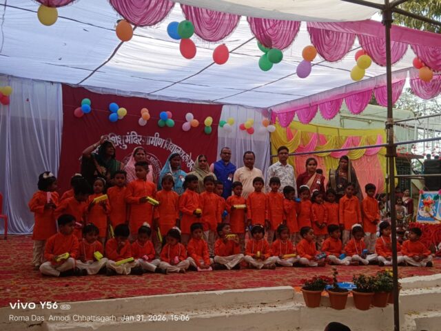 छोटे – छोटे बच्चों के द्वारा एक से बढ़कर एक रंगा रंग कार्यक्रम का प्रस्तुत किए ,जिससे श्रोता एवं दर्शक देर रात थिरकते रहे , कार्यक्रम को प्रोत्साहित करने दर्शक दीर्घा के द्वारा , लगातार पुरस्कार की राशि, बरसते रहे , तथा शिशु मंदिर के पालक माताओं के द्वारा संचालित मां के आंचल समिति द्वारा वेश भूषा तथा अन्य जरूरी समानों के लिए 11000 की राशि भेंट किए, एवं सभी बच्चों के लिए 501 रुपए की राशि सरपंच श्री मति दामिनी राजू मिर्झा के द्वारा प्रदान किए, कार्यक्रम का सफल संचालन श्री ख़ेमूराम तुरकाने ने किया, एवं कार्यक्रम को सफल बनाने में श्री मति बसंती दास,सावित्री तुरकाने , दुर्गेश्वरी पाल,सीमा साहू, रोमा दास, कुमारी लक्ष्मी साहू, प्रतिभा साहू ,शकुंतला निषाद, पार्वती साहू, प्रधानाचार्य श्री गंगू राम वर्मा,आचार्य श्री रूपेन्द्र साहू , परमानंद वर्मा, उत्तम साहू, आया श्री मति खिलेश्वरी साहू , कला पाल, आदि का भरपूर सहयोग रहा । वरिष्ठ ग्रामीण जन एवं प्रतिनिधियों में श्रीमति कुमारी साहू, शशि टंडन, जानकी साहू, सुखीराम साहू , प्राचार्य श्री त्रिलोचन साहू , अशोक साहू, टिकेश्वरी साहू, लीला साहू ,धनेश्वरी साहू तथा समस्त ग्राम वासियों का भरपूर समर्थन एवं सहयोग मिला , अंत में संस्था के प्रधानाचार्य द्वारा उपस्थित दर्शक दीर्घा मंचस्थ अतिथि गण एवं समस्त ग्राम वासियों का आभार प्रदर्शन किया।
