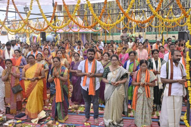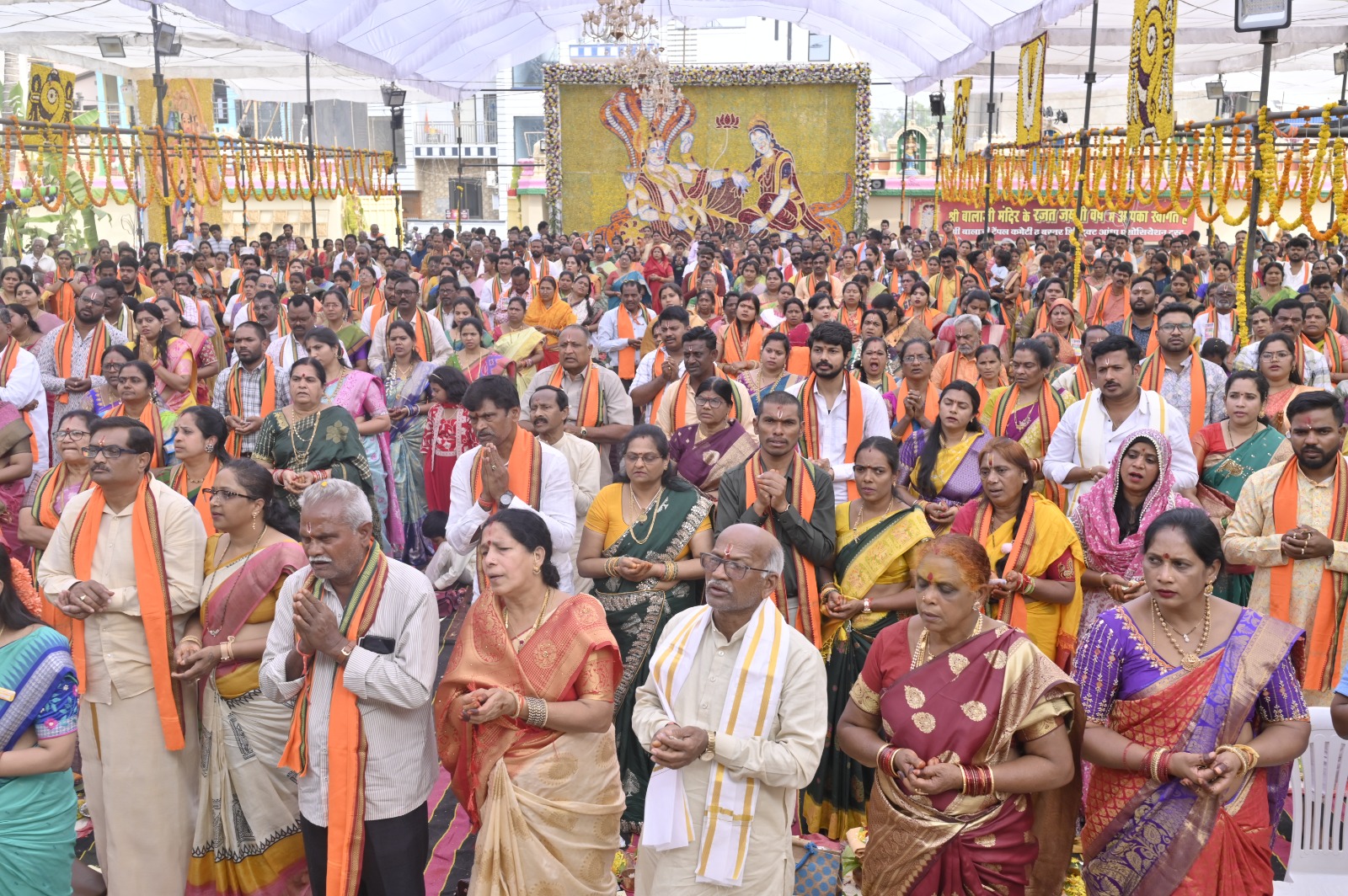 श्री रामा चारलू आचार्य एवं उनके साथ पधारे पंडितों के समूह द्वारा विधि-विधान से भगवान सत्यनारायण कथा का वाचन किया गया। इस पावन अनुष्ठान में 380 जोड़ों ने सामूहिक रूप से पूजन-अर्चन कर पुण्य लाभ अर्जित किया। सर्वप्रथम भगवान श्री गणेश जी का आह्वान किया गया, तत्पश्चात समस्त देवी-देवताओं का आह्वान कर कथा के पांच अध्यायों का वाचन किया गया। प्रत्येक अध्याय के पश्चात भगवान के श्री चरणों में पूजन सामग्री अर्पित की जाती रही। पूजन उपरांत आयोजित महाभंडारे में लगभग 5000 श्रद्धालुओं ने भोजन प्रसाद ग्रहण किया। श्रद्धालुओं की सेवा में मंदिर समिति, आंध्र समाज एवं स्वयंसेवक पूरे समर्पण भाव से जुटे रहे।