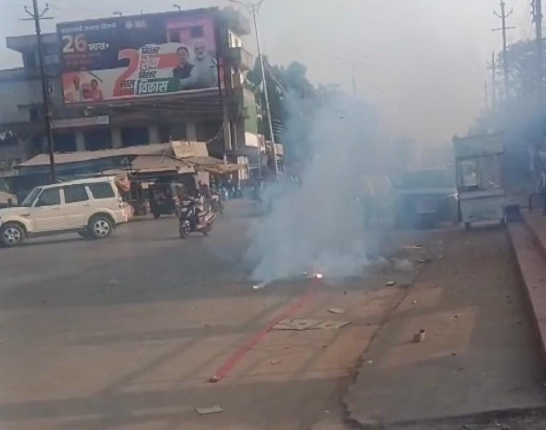 बस स्टैंड पर जमकर हुई आतिशबाजी, कार्यकर्ताओं ने लगाए नारे