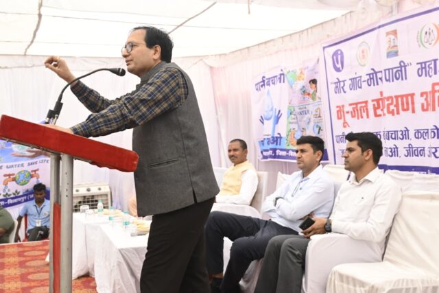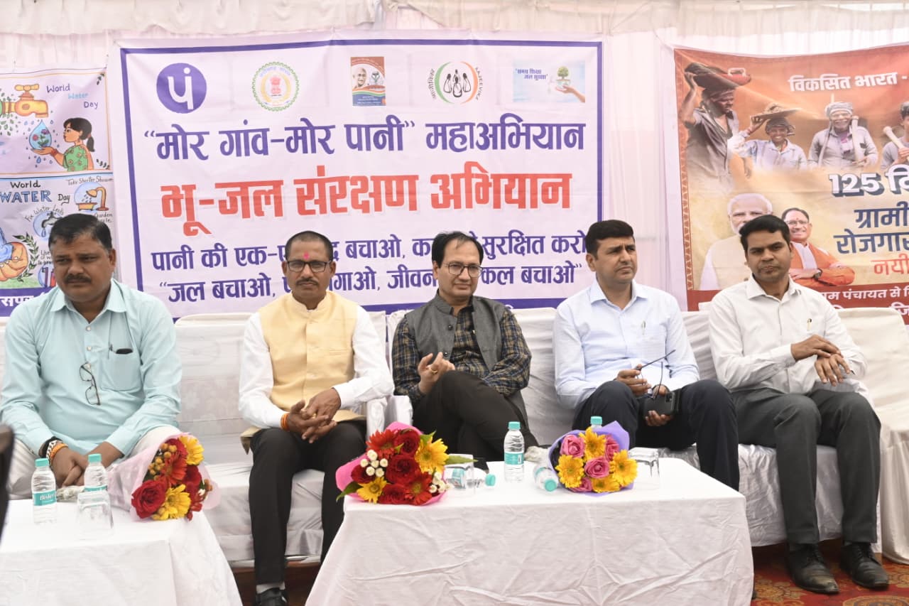 कलेक्टर श्री संजय अग्रवाल ने अपने उद्बोधन में कहा कि जल जीवन के लिए अनमोल है लेकिन हमारे लगातार दोहन से भू जल स्तर में गिरावट आई है जिससे भावी पीढ़ी को जल संकट का सामना करना पड़ेगा, हमारी ये जिम्मेदारी है कि हम वर्षा जल का संरक्षण कर पानी को सहेजें और इस विकट समस्या से अपने गांव को बचाएं। उन्होंने वैकल्पिक खेती पर जोर देते हुए फसल विविधिकरण का संदेश दिया जिससे पानी की बचत हो। उन्होंने कहा कि हमें विभिन्न उपायों के माध्यम से जल संरक्षण के लिए काम करना है। उन्होंने ग्रामीणों से जल संरक्षण को जन आंदोलन बनाने का आह्वान करते हुए कहा कि ‘मोर गांव मोर पानी’ अभियान तभी सफल होगा जब प्रत्येक नागरिक इसमें अपनी जिम्मेदारी समझे और पानी बचाने में अपनी भूमिका निभाएं।
