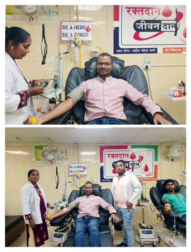 डिमरापाल जगदलपुर मेडिकल कॉलेज मेकॉज में हुए एक घटनाक्रम ने मानवीय संवेदना की बड़ी मिसाल पेश की है। मेडिकल कॉलेज अस्पताल में इलाजरत थैलेसीमिया पीड़ित बच्चे साहिल को खून की सख्त जरूरत थी। मगर ब्लड बैंक मेकॉज ब्लड बैंक में ब्लड स्टॉक की कमी थी। बच्चे के ग्रुप का खून उपलब्ध नहीं था। बच्चे को तत्काल खून चढ़ाना बहुत जरूरी था। बच्चे के परिजन खून की व्यवस्था के लिए भटक रहे थे। ब्लड बैंक इंचार्ज डॉ. राजकिशोर नायक को जब पता चला कि साहिल को उन्हीं के ग्रुप के रक्त की जरूरत है, तो उन्होंने बिना समय जाया किए, रक्तदान के लिए सामने आ गए। डॉ. नायक ने रक्तदान किया और उनके खून से एक पराए खून की जान बच गई। ऎसी सराहनीय पहल कर डॉ. राजकिशोर नायक रियल नायक बन गए। डॉ. नायक की इंसानियत से साहिल के परिजनों के आंसू छलक पड़े, उन्होंने डॉ. नायक को धन्यवाद दिया और उनके प्रति आभार व्यक्त किया। हॉस्पीटल में मौजूद तमाम मरीज, मरीजों के परिजन और हॉस्पीटल स्टॉफ भी डॉ. नायक के कदम से अभिभूत हो उठे। सभी ने उनकी मानवीय संवेदना भरी पहल की सराहना की।