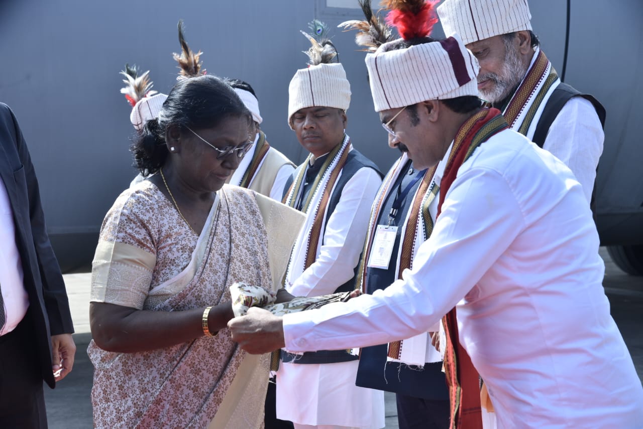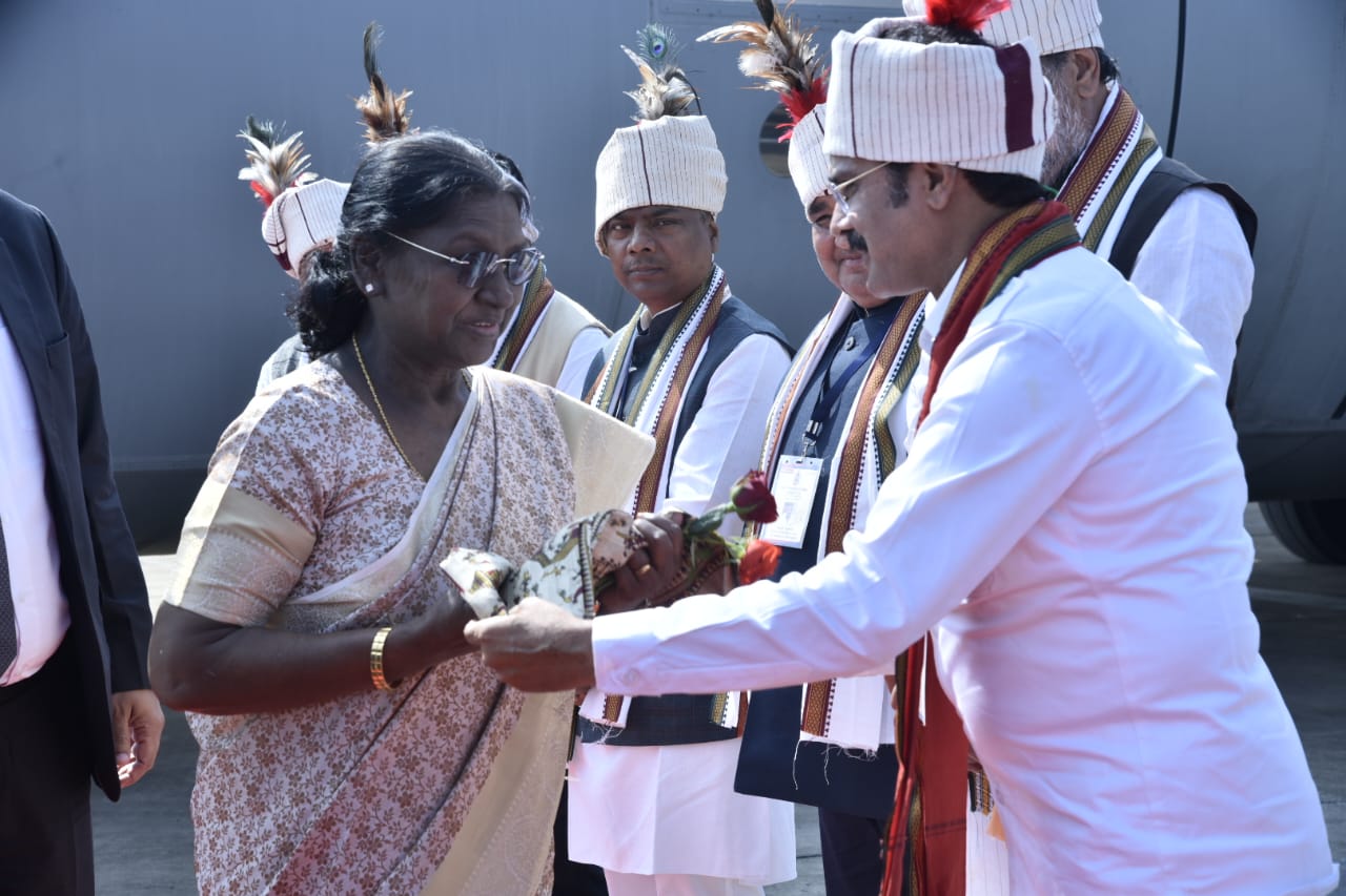 जगदलपुर। शहर के प्रथम नागरिक महापौर संजय पाण्डेय ने देश की प्रथम नागरिक राष्ट्रपति द्रौपदी मुर्मू का आत्मीय स्वागत अभिनंदन किया। राष्ट्रपति जगदलपुर में संभाग स्तरीय बस्तर पंडुम का उद्घाटन करने पहुंची हैं। जगदलपुर के मां दंतेश्वरी एयरपोर्ट पर जगदलपुर के सनातनी महापौर संजय पाण्डेय आज विशुद्ध जनजातीय वेशभूषा में नजर आए। इस दौरान राज्य के वन मंत्री केदार कश्यप, प्रदेश भाजपा अध्यक्ष एवं विधायक किरण सिंह देव भी एयरपोर्ट पर मौजूद थे। सभी नेता और जनप्रतिनिधि जनजातीय वेशभूषा में थे। समूचा जगदलपुर आज जनजातीय संस्कृति में रंगा नजर आ रहा है।