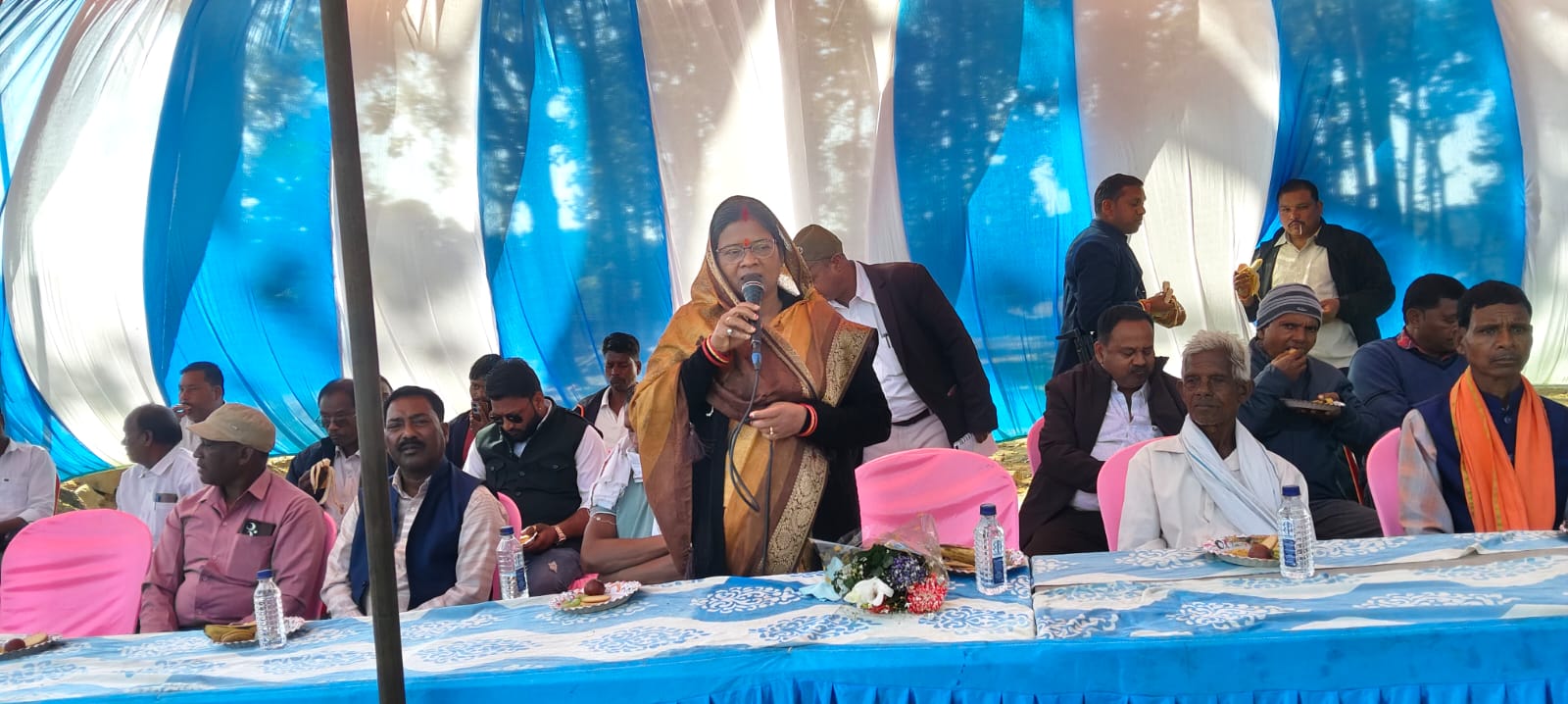 भूमि पूजन कार्यक्रम में सामरी विधायक उद्देश्वरी पैकरा मुख्य अतिथि के रूप में उपस्थित रहीं। कार्यक्रम स्थल पर पहुंचने पर ग्रामीणों एवं जनप्रतिनिधियों द्वारा विधायक का फूल-मालाओं से भव्य स्वागत किया गया। विधायक उद्देश्वरी पैकरा ने भूमि पूजन कर सड़क निर्माण कार्य का शुभारंभ किया।