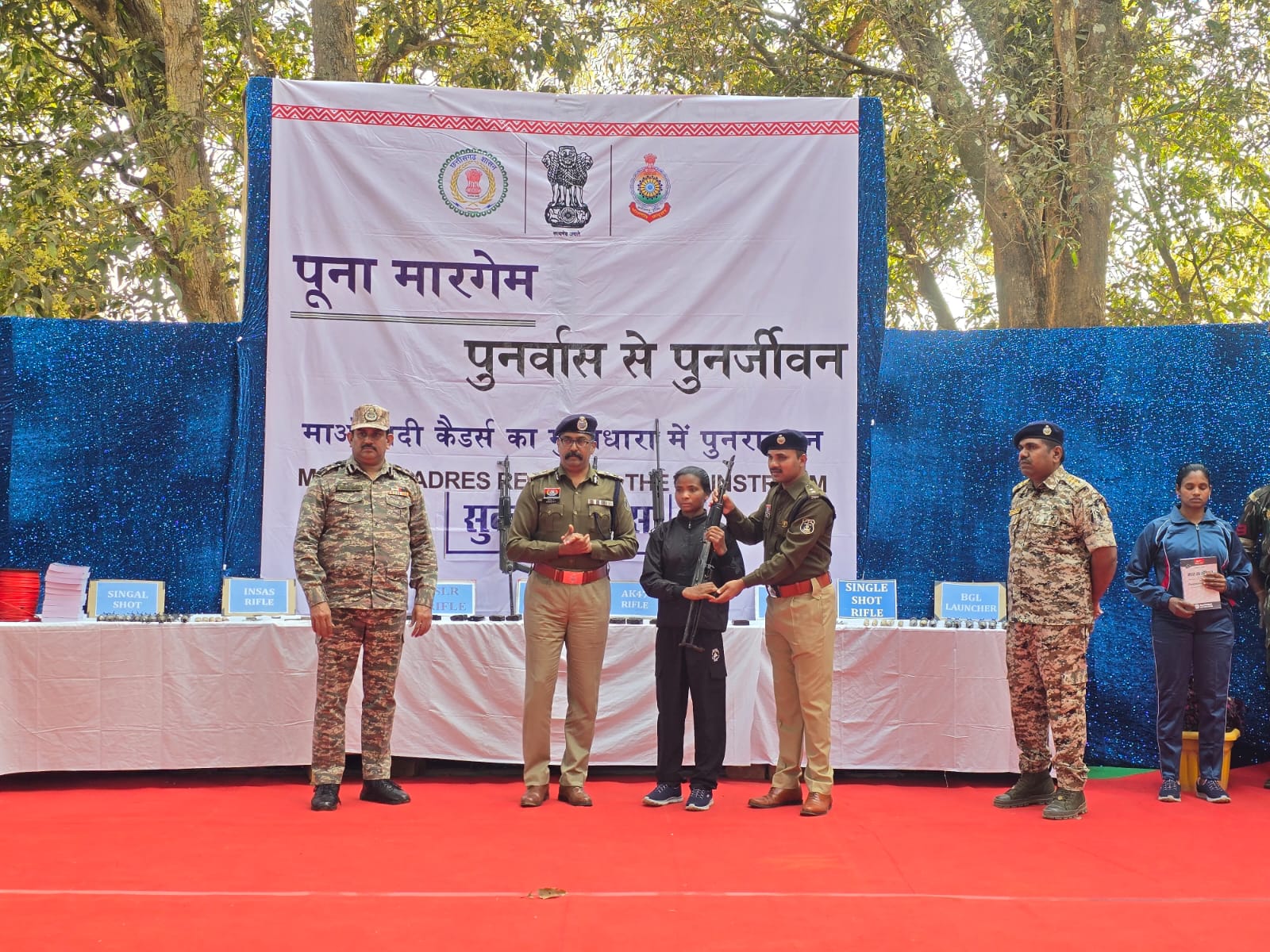 सीआरपीएफ के महानिरीक्षक (ऑप्स) बीजापुर सेक्टर बीएस नेगी, पुलिस अधीक्षक बीजापुर डा. जितेंद्र कुमार की उपस्थिति में हुए आत्मसमर्पण में माओवादियों के कंपनी नंबर–दो एवं सात के पीपुल्स पार्टी कमेटी सदस्य, एरिया कमेटी सदस्य, पार्टी सदस्य, डीएकेएमएस, केएएमएस और जनताना सरकार अध्यक्ष जैसे पदों पर सक्रिय माओवादी शामिल हैं। पुनर्वास के दौरान कैडरों ने कार्डेक्स वायर का एक बंडल और 50 जिलेटिन स्टिक स्वेच्छा से सुरक्षा बलों को सुपुर्द की गई। सभी आत्मसमर्पित कैडरों के पुनर्वास एवं पुनर्समावेशन की विधिक प्रक्रिया जारी है। शासन की नीति के तहत प्रत्येक कैडर को 50 हजार की तात्कालिक आर्थिक सहायता दी गई है।
