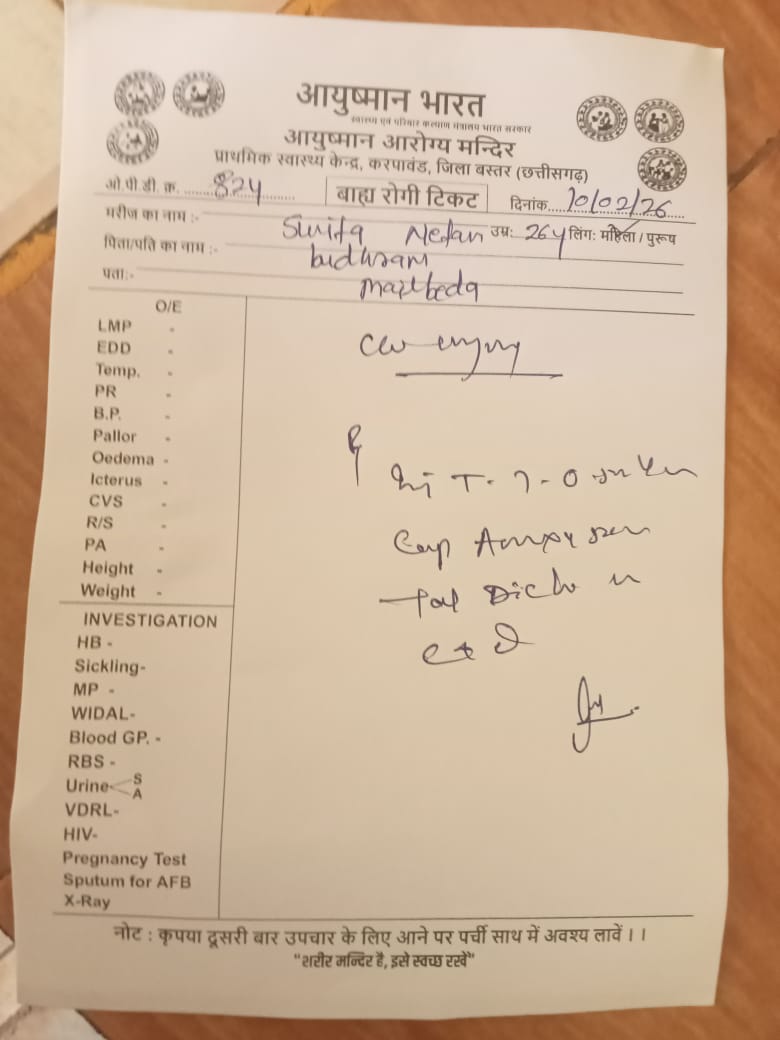 बकावंड ब्लॉक के अंतर्गत ग्राम करपावंड के पास हुए सड़क हादसे में घायल होने के बाद कुछ लोगों को तत्काल इलाज के लिए नजदीकी शासकीय अस्पताल ले जाया गया। लेकिन वहां का नजारा देखकर साफ हो गया कि यह अस्पताल सिर्फ नाम का है, सुविधाओं के नाम पर शून्य। इमरजेंसी वार्ड में पहुंचने के बावजूद प्राथमिक उपचार तक उपलब्ध नहीं था। न टिटनेस इंजेक्शन, न दर्द की दवा, न कोई जरूरी मेडिसिन। अस्पताल स्टाफ ने साफ शब्दों में बाहर मेडिकल दुकान से दवा खरीदकर लाने को कह दिया। सवाल यह है कि अगर मरीज ही बाहर से दवा खरीदेगा, तो फिर अस्पताल खोलने का क्या मतलब?स्थिति की गंभीरता को देखते हुए घायलों के परिजन ने तुरंत अपने परिचित को फोन किया, जिसके बाद बकावंड बीएमओ द्वारा स्टाफ को निर्देश दिए गए। तब जाकर आनन-फानन में टिटनेस का इंजेक्शन बाहर से मंगाकर लगाया गया। यानि बिना फोन और दबाव के शायद इलाज भी नहीं मिलता। यह बेहद शर्मनाक और चिंताजनक है कि जिस इमरजेंसी वार्ड में जीवन बचाने की जिम्मेदारी होती है, वहीं मरीजों को दवा के लिए भटकाया जा रहा है। अगर हालत ज्यादा गंभीर होती तो जान भी जा सकती थी। इस लापरवाही की जिम्मेदारी आखिर कौन लेगा? ऐसी स्वास्थ्य व्यवस्था आम जनता के साथ खिलवाड़ नहीं तो क्या है? क्या ये अस्पताल सिर्फ दिखावे और कागजी खानापूर्ति के लिए चल रहे हैं?