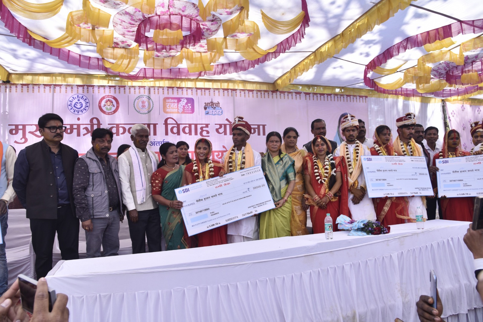 उन्होंने पुरानी यादों को साझा करते हुए बताया कि पूर्व में निर्धन परिवारों को बेटियों के सम्मानजनक विवाह के लिए अपनी संपत्ति तक गिरवी रखनी पड़ती थी, लेकिन तत्कालीन मुख्यमंत्री डॉ. रमन सिंह के नेतृत्व में छत्तीसगढ़ शासन ने 2005 में इस जिम्मेदारी को उठाया। उन्होंने यह भी रेखांकित किया कि वर्ष 2005 में मात्र 5 हजार रुपये की सहायता राशि से शुरू हुई यह योजना आज 50 हजार रुपये तक पहुंच चुकी है, जो गरीब परिवारों के सशक्तिकरण का प्रतीक है। कार्यक्रम में क्षेत्र के अनेक जनप्रतिनिधि और विशिष्ट अतिथि इस पुनीत कार्य के साक्षी बने, जिनमें महापौर संजय पांडे, जिला पंचायत अध्यक्ष वेदवती कश्यप, नगर निगम सभापति खेमसिंह देवांगन, जिला पंचायत उपाध्यक्ष बलदेव मंडावी और जनपद पंचायत अध्यक्ष पदलाम नाग, नगर निगम के राजस्व सभापति संग्राम सिंह राणा शामिल थे। इन सभी ने नव-दंपत्तियों को सुखमय दाम्पत्य जीवन की शुभकामनाएं दीं। इस दौरान डिप्टी कलेक्टर नंदिनी साहू, जिला कार्यक्रम अधिकारी महिला एवं बाल विकास विभाग मनोज सिन्हा सहित अन्य अधिकारियों व कर्मचारियों की सक्रिय मौजूदगी में यह विशाल आयोजन सफलतापूर्वक संपन्न हुआ।