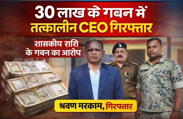 बलरामपुर जिले के जनपद पंचायत वाड्रफनगर के ग्राम पंचायत तुगंवा, गुडरू, जमई, पेण्डारी में मुरम मिट्टी, सडक व सह पुलिया, तटबंध, डब्लूबीएम निर्माण का फर्जी बिल लगाकर वित्तीय वर्ष 2014-15 में शासकीय राशि का हेराफेरी कर फर्जी दस्तावेज तैयार कर गबन करने के संबंध में मुख्य कार्यपालन अधिकारी जनपद पंचायत वाड्रफनगर द्वारा पत्र क्रमांक-1825/मनरेगा/स्था/ज0पं0/2020-21 वाड्रफनगर दिनांक 30/04/2020 के माध्यम से जांच रिपोर्ट एवं दस्तावेज पेश करने पर थाना बसंतपुर चौकी वाड्रफनगर में आरोपी अश्विनी कुमार तिवारी कार्यक्रम अधिकारी (मनरेगा) जनपद पंचायत वाड्रफनगर के विरूद्ध वर्ष 2020 में अपराध क्रमांक 50/2020 धारा 467, 468, 420, 409, 34 ता.हि. पंजीबद्ध कर विवेचना में लिया गया है। विवेचना दौरान पूर्व में प्रकरण के आरोपी अश्विनी कुमार तिवारी को गिरफ्तार कर न्यायिक रिमांड पर भेजा गया है। प्रकरण में विवेचना दौरान मामले के अन्य आरोपी सप्लायर हरिहर यादव, कुजलाल साहू व रोजगार सहायक गिरीश यादव को गिरफ्तार कर न्यायिक रिमाण्ड पर भेजा गया है। वर्तमान में पुलिस अनुविभागीय अधिकारी वाड्रफनगर के द्वारा प्रकरण में जनपद पंचायत के कर्मचारियों व सप्लायर का माननीय न्यायालय से धारा 164 जा० फौ० का कथन कराकर प्रकरण के गिर० आरोपियों के विरुद्ध माननीय न्यायालय मे पूरक चालान तैयार कर पेश किया गया है। प्रकरण के विवेचना के क्रम में आरोपी अश्विनी कुमार तिवारी के द्वारा अपने कथन में यह बताया गया है कि उसने एस. के. मरकाम व एक अन्य के साथ मिलकर शासकीय राशि 30,02,449 रु. का गबन किया गया है, प्रकरण में कई वर्षों से फरार आरोपी तत्कालीन मुख्य कार्यपालन अधिकारी जनपद पंचायत वाड्रफनगर श्रवण कुमार मरकाम उर्फ एस० के० मरकाम पिता स्व. बिकाउ राम मरकाम उम्र 62 वर्ष साकिन शिवमंदीर महुआपारा वार्ड क्रमांक 04 थाना गांधीनगर अंबिकापुर को हिरासत में लेकर वाड्रफनगर लाया गया जिससे पूछताछ के दौरान अपना आरोपी द्वारा अपना जुर्म स्वीकार करने पर आरोपी तत्कालीन मुख्य कार्यपालन अधिकारी जनपद पंचायत वाड्रफनगर श्रवण कुमार मरकाम उर्फ एस० के० मरकाम पिता स्व. बिकाउ राम मरकाम उम्र 62 वर्ष साकिन शिवमंदीर महुआपारा वार्ड क्रमांक 04 थाना गांधीनगर अंबिकापुर विधिवत् गिरफ्तार कर न्यायिक रिमाण्ड पर भेजा गया है। मामले में फरार अन्य आरोपी की लगातार पतासाजी की जा रही है।