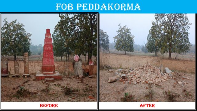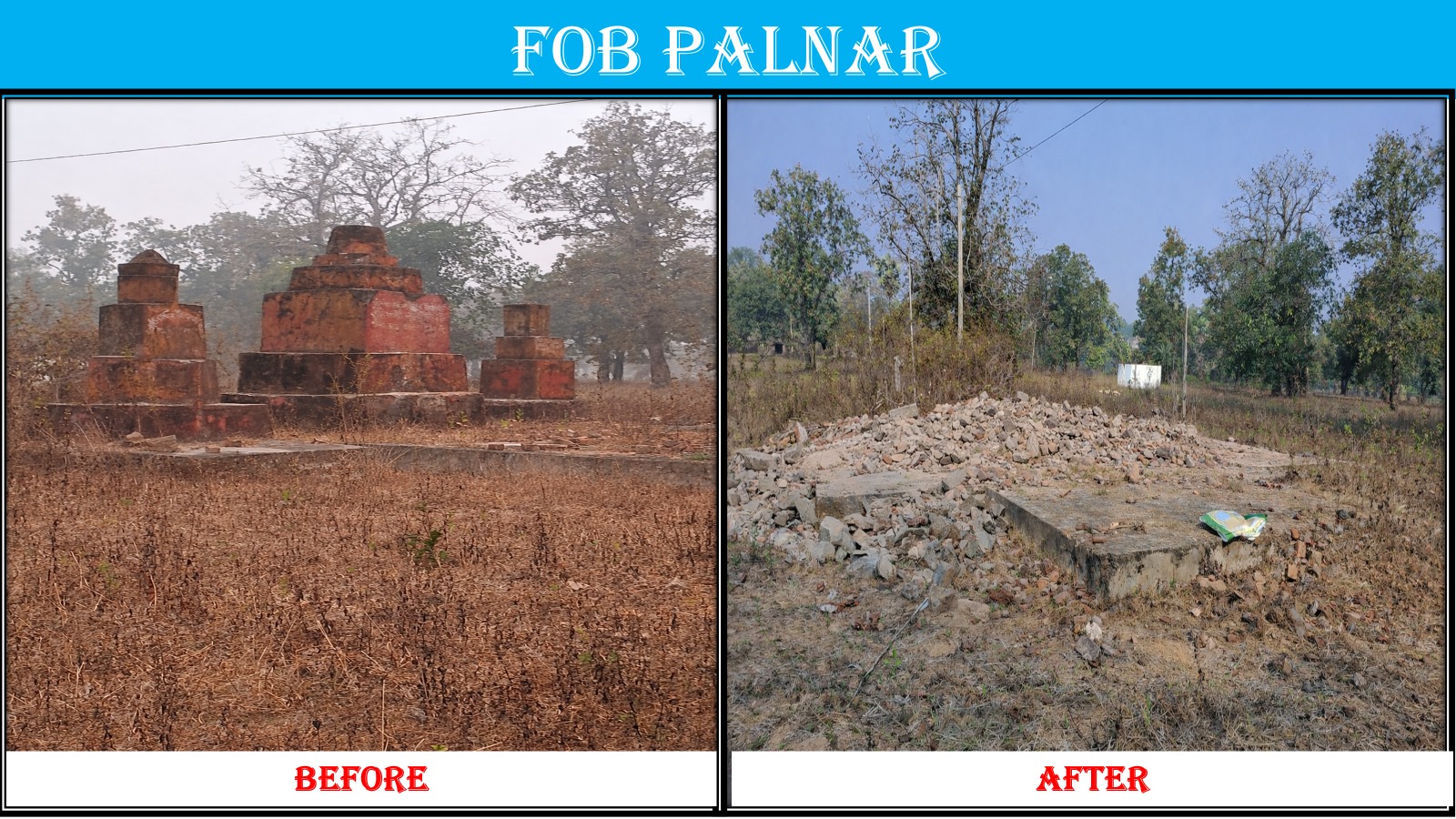 🔹 ग्राम पालनार के समीप 03 माओवादी स्मारक तथा ग्राम पेददाकोरमा में 01 स्मारक को केरिपु 222 द्वारा एरिया डोमिनेशन के दौरान ध्वस्त किया गया।