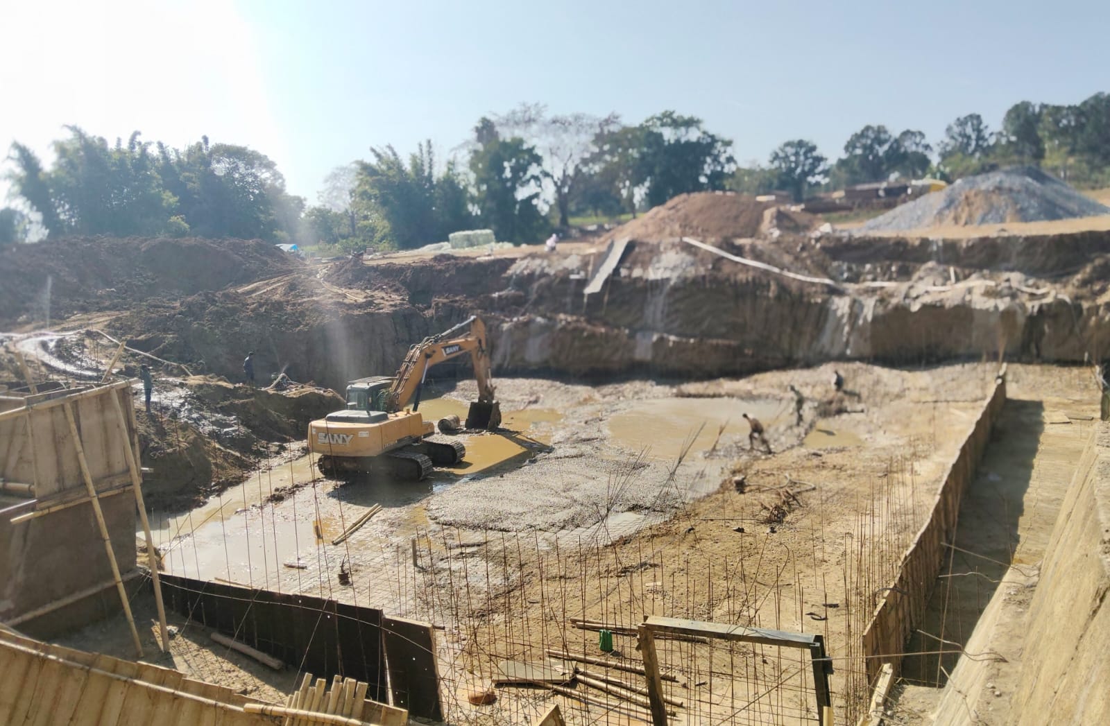 निर्माण स्थल पर यह भी देखा गया कि विंग वॉल का निर्माण बिना समुचित खुदाई के किया जा रहा है, जबकि नियमों के अनुसार नींव की खुदाई अनिवार्य होती है। इसी तरह, स्टॉप डैम के बेस को भी पूरी गहराई तक तैयार नहीं किया गया है।