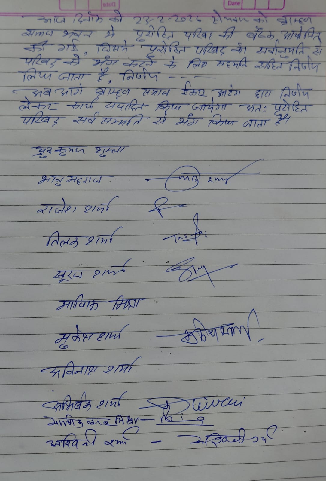 आरंग में ब्राह्मण पुरोहित परिषद भंग, सर्वसम्मति से समाज में किया गया विलय