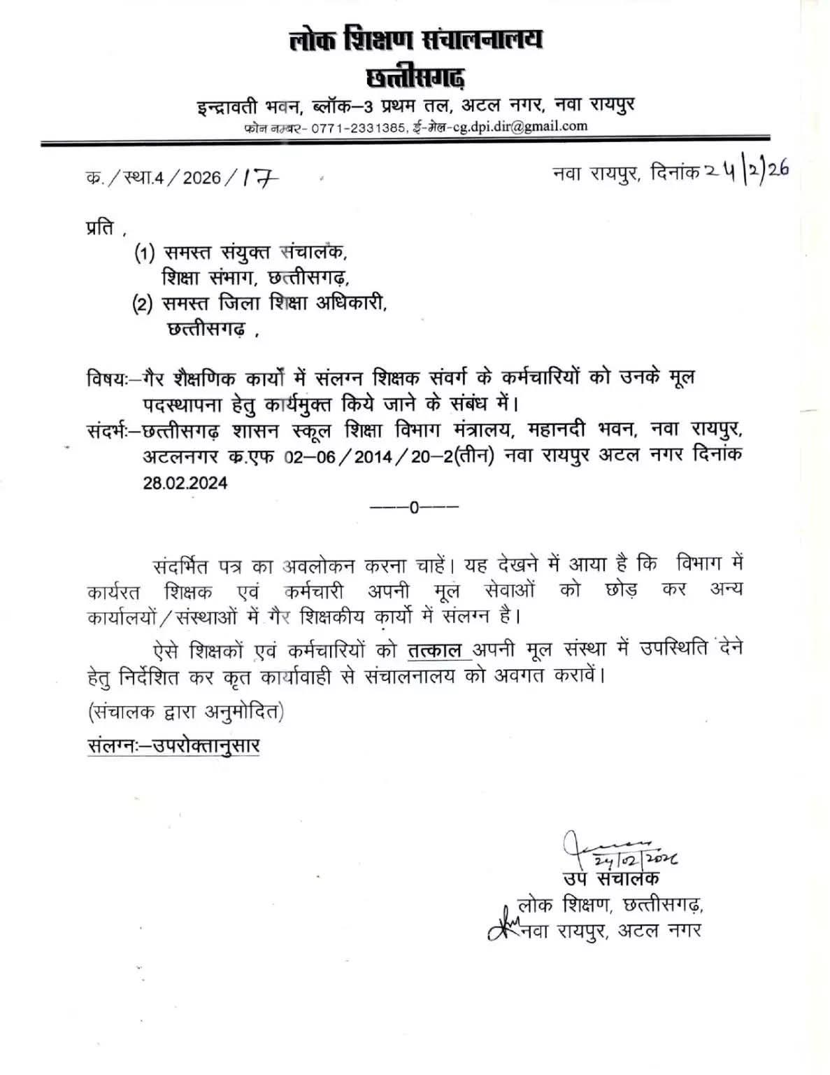 = गैर शिक्षकीय कार्य में लगे शिक्षकों को कार्यमुक्त करने डीपीआई का आदेश =