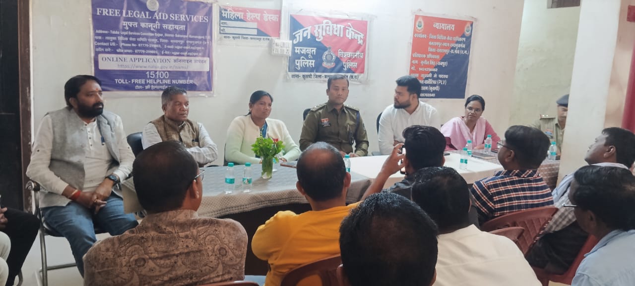 कुसमी अनुविभागीय अधिकारी राजस्व अनमोल टोप्पो एवं अनुविभागीय अधिकारी पुलिस आशीष कुंजाम की उपस्थिति में आगामी होने वाले होली त्यौहार को देखते हुए आज दिनांक 26/2/26 को कुसमी थाना परिसर में शांति सम्मेलन की बैठक का आयोजन किया गया।