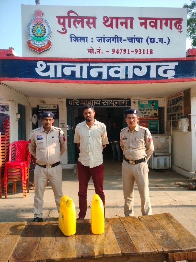 पुलिस अधीक्षक जांजगीर चांपा श्री विजय कुमार पाण्डेय (IPS) के निर्देशन में जिले में अवैध शराब बिक्री पर अंकुश लगाने के लिए लगातार कार्रवाई की जा रही है। इसी क्रम में थाना नवागढ़ पुलिस द्वारा मुखबिर सूचना पर रेड कार्यवाही किया गया आरोपी के कब्जे से 06 लीटर अवैध कच्ची महुआ कीमती 1200/ रुपए को बरामद कर आरोपी के विरुद्ध आबकारी एक्ट के तहत कार्यवाही करते हुए गिरफ्तार कर न्यायिक रिमांड पर भेजा गया ।