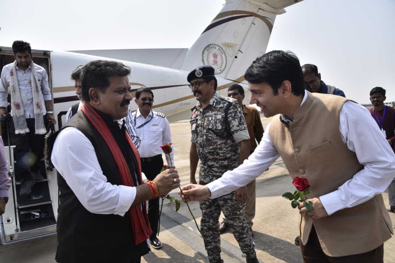 जगदलपुर। स्थानीय मां दंतेश्वरी एयरपोर्ट में उप मुख्यमंत्री एवं गृहमंत्री विजय शर्मा अपने एक दिवसीय बस्तर प्रवास पर जगदलपुर पहुंचे। यहां मां दंतेश्वरी एयरपोर्ट पर उनका जनप्रतिनिधियों और वरिष्ठ अधिकारियों ने आत्मीय स्वागत किया। इस दौरान सांसद बस्तर महेश कश्यप, विधायक जगदलपुर किरण सिंह देव, केंद्रीय जिला सहकारी बैंक के अध्यक्ष दिनेश कश्यप, महापौर संजय पाण्डे सहित अन्य गणमान्य जनप्रतिनिधियों के साथ ही कमिश्नर बस्तर संभाग डोमन सिंह, आईजी बस्तर रेंज सुंदरराज पी., कलेक्टर आकाश छिकारा, एसपी शलभ कुमार सिन्हा और अन्य अधिकारियों द्वारा स्वागत किया गया। उप मुख्यमंत्री श्री शर्मा जगदलपुर के कुमरावंड स्थित कृषि कॉलेज के ऑडिटोरियम में राष्ट्रीय विज्ञान दिवस के कार्यक्रम और वीर सावरकर भवन में आयोजित कृषक उन्नति योजना अंतर्गत किसानों को राशि वितरण कार्यक्रम में शामिल होंगे ।