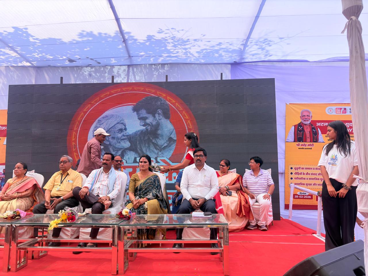 कार्यक्रम के मुख्य अतिथि जिला पंचायत अध्यक्ष राजेश सूर्यवंशी ने कहा कि समाज तभी सशक्त बनता है, जब नई पीढ़ी अपने बुजुर्गों के अनुभवों का सम्मान करे। उन्होंने इसे पीढ़ियों के बीच दूरी कम करने वाला अभिनव प्रयास बताया। महापौर श्रीमती पूजा विधानी ने अपने उद्बोधन में कहा कि राज्य शासन वरिष्ठ नागरिकों की सामाजिक सुरक्षा, स्वास्थ्य देखभाल, आश्रय एवं सशक्तिकरण के लिए प्रतिबद्ध है। अटल वयो अभ्युदय योजना इसी दिशा में महत्वपूर्ण पहल है।
