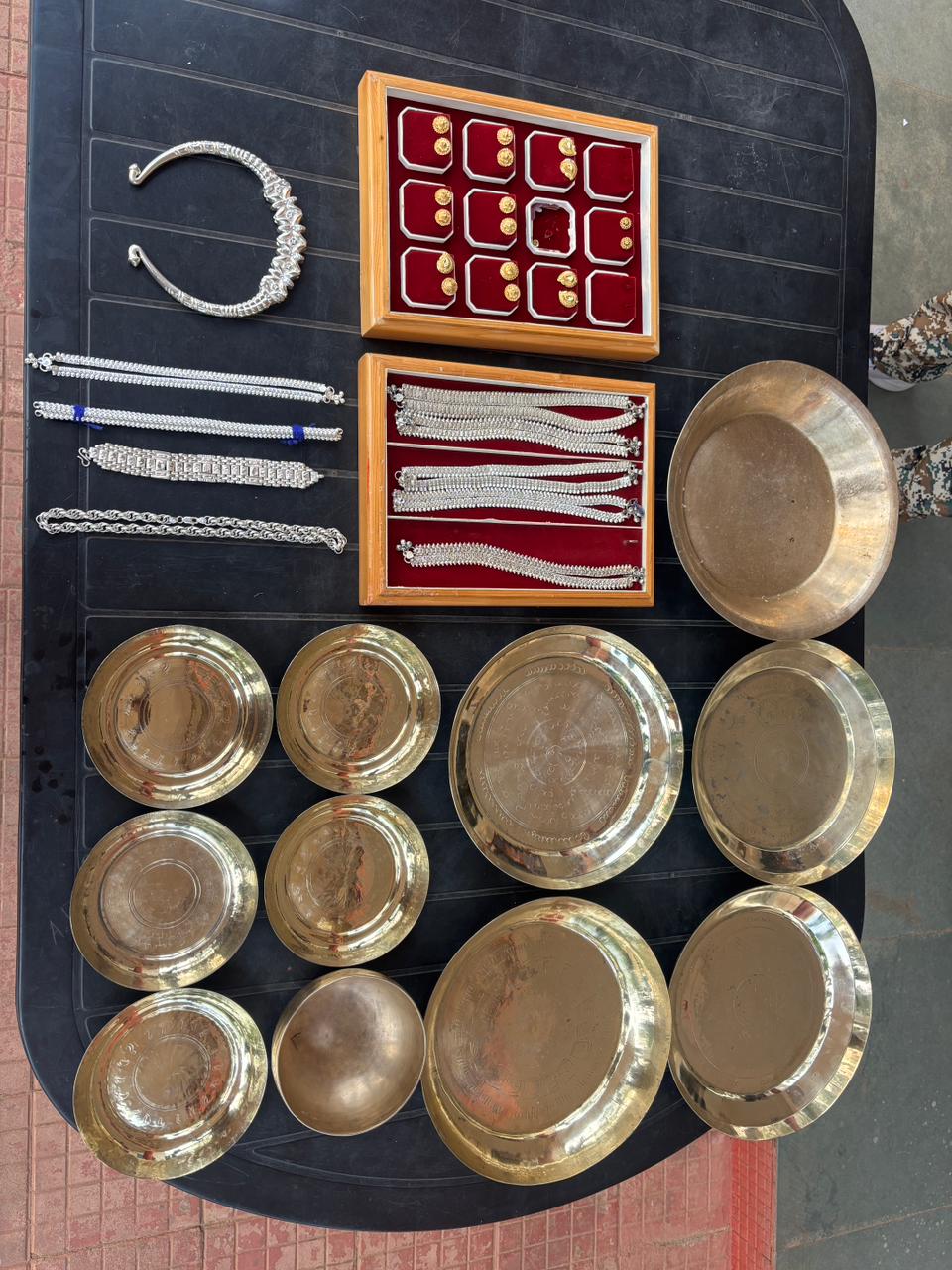 चोरी हुए सामान में चांदी के पायल, ब्रेसलेट, चेन, कड़ा, गिल्ट के हसुली, चेन और कंचन थाली सहित अन्य जेवरात शामिल थे।