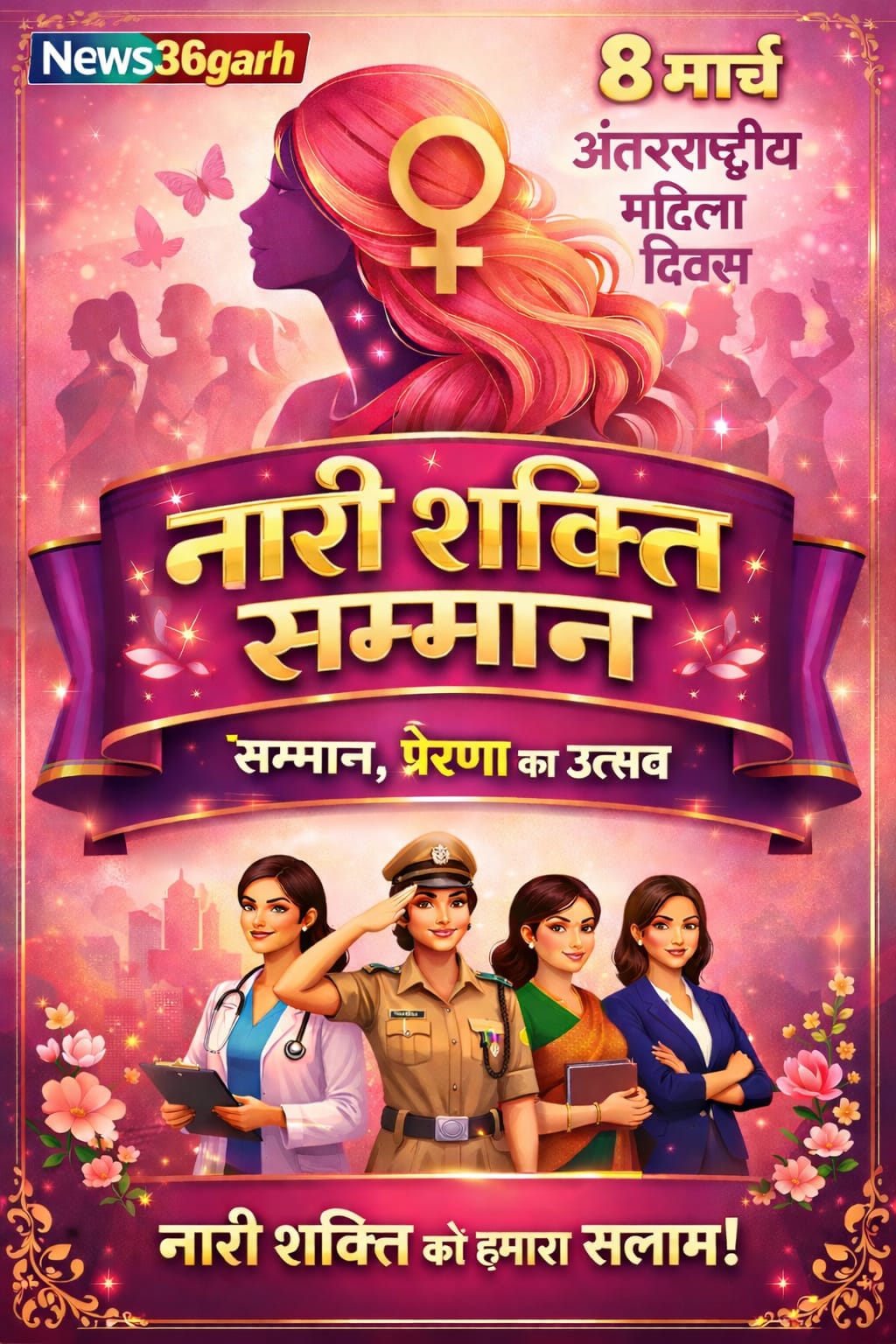 समाज में महिलाओं की भूमिका केवल परिवार तक सीमित नहीं है, बल्कि वे शिक्षा, समाज सेवा, जनजागरण और विकास के हर क्षेत्र में अपनी महत्वपूर्ण भागीदारी निभा रही हैं। ऐसी ही प्रेरणादायी महिलाओं को सम्मानित करने के उद्देश्य से News36garh द्वारा अंतर्राष्ट्रीय महिला दिवस के अवसर पर “नारी शक्ति सम्मान अभियान” की शुरुआत की गई है। इस विशेष पहल के माध्यम से उन महिलाओं को सामने लाया जा रहा है जिन्होंने अपने कार्यों से समाज में सकारात्मक बदलाव लाने में महत्वपूर्ण योगदान दिया है।
