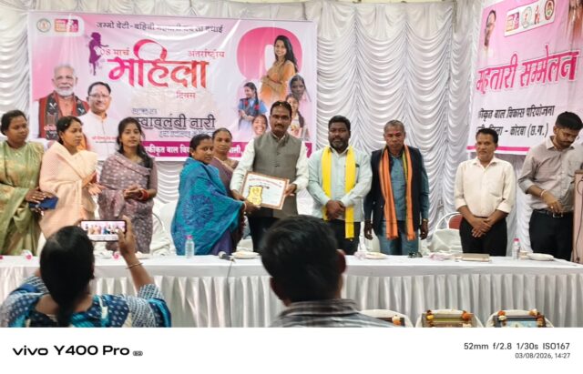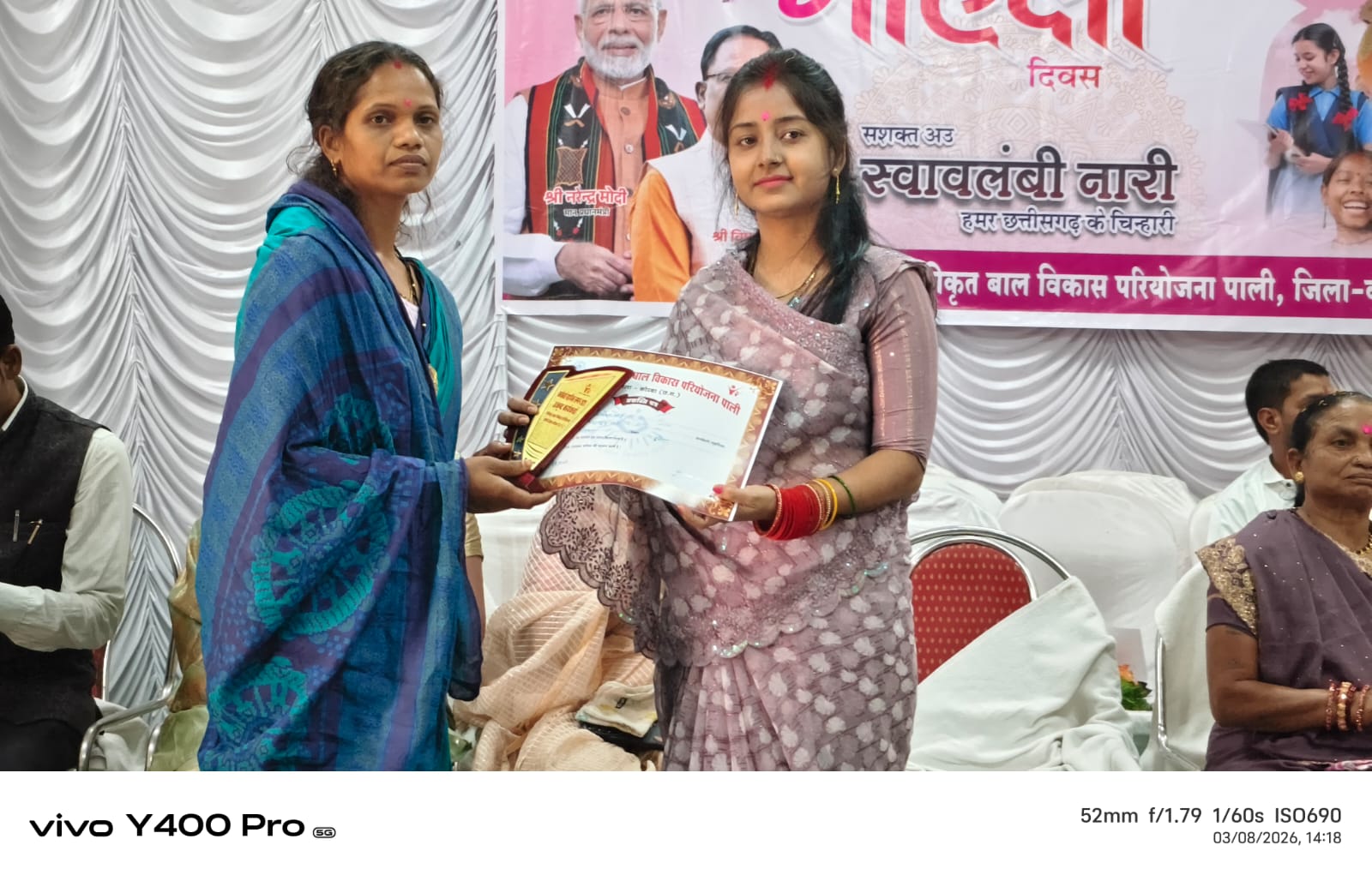 आज की महिला अबला नहीं बल्कि सृष्टि की सृजन करने वाली है एक महिला समाज में कई रोल प्ले करती है चाहे मां के रूप में हो ,बहन के रूप में हो पत्नी,बहु ना जाने कितने रूप है, आज कोई भी क्षेत्र उठा कर देख लीजिए हर क्षेत्र में आज भारत की नारी आगे बढ़ रही है राजनीति के क्षेत्र में देश के सर्वोच्च पद पर देश की राष्ट्रपति द्रोपदी मुर्मू जी,कला के क्षेत्र में लता मंगेशकर जी, महिला शिक्षा के क्षेत्र में सावित्री बाई फुले जी का योगदान समाज नहीं भूल सकता,खेल के क्षेत्र में भी देश की बेटियों ने अपना लोहा विश्व की मनवाया है, साथ ही आयोजन के दौरान राष्ट्र निर्माण की आधारशिला रखने वाली हमारी कर्मठ सुपरवाइजर,आंगनबाड़ी कार्यकर्ता एवं सहायिकाओं को उनकी निस्वार्थ सेवा,अथक परिश्रम और समर्पण के लिए प्रतीक चिन्ह और प्रशस्ति पत्र देकर सम्मानित किया गया,