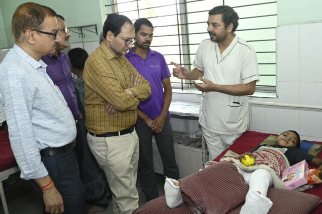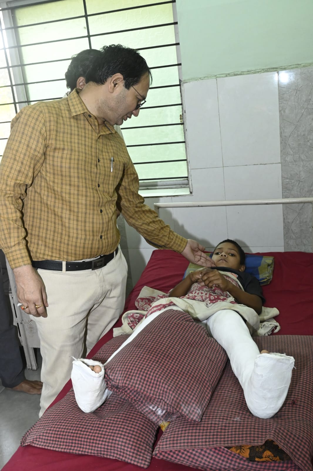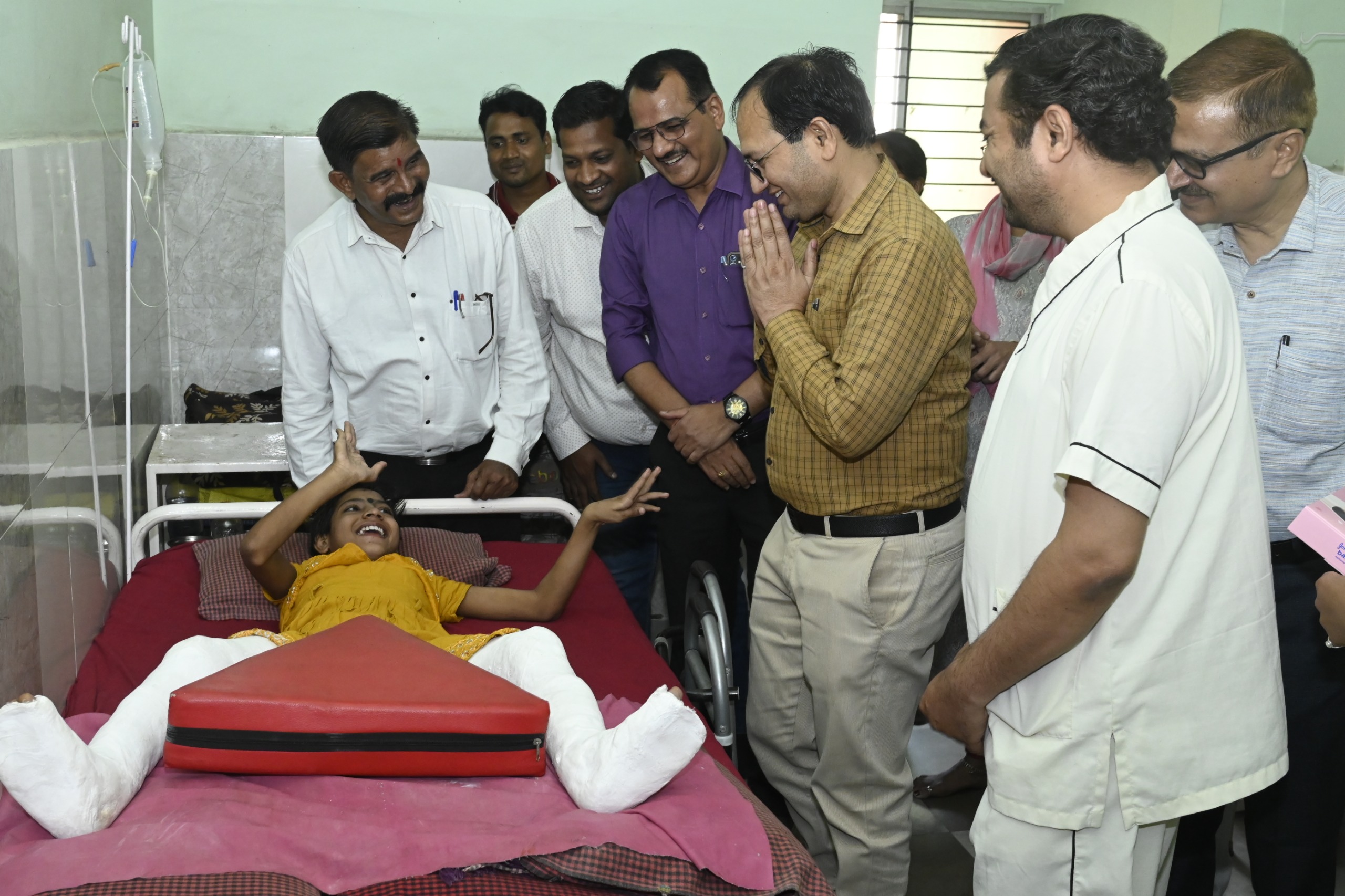 बिलासपुर, 9मार्च 2026/ कलेक्टर संजय अग्रवाल ने आज मंगला स्थित बिलासपुर हॉस्पिटल पहुंचकर शल्य चिकित्सा कराए गए दिव्यांग बच्चों से मुलाकात की। उन्होंने बच्चों को आवश्यक उपकरण एवं उपहार प्रदान किए और उनके शीघ्र स्वस्थ होने की कामना की। कलेक्टर ने उनके अभिभावकों को बच्चों की सतत देखभाल करने के लिए प्रेरित करते हुए कहा कि उपचार के बाद बच्चों की नियमित देखरेख और थेरेपी बेहद जरूरी है।