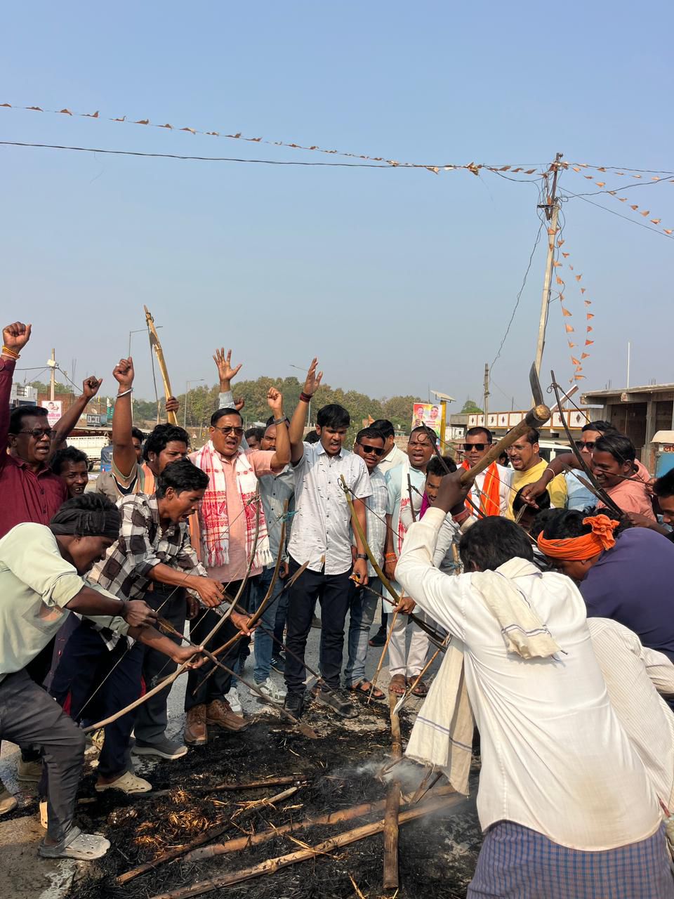 पुतला दहन करने पहुंचे भाजपा सरगुजा अजजा मोर्चा के कार्यकर्ता- पदाधिकारी एवं तीर धनुष फरसा लिए हुए पंडो समाज के लोगों ने टी एस बाबा के ख़िलाफ़ जमकर नारेबाज़ी की और पुतले पर जूता चप्पल फेंकते हुए उसे आग के हवाले कर दिया।