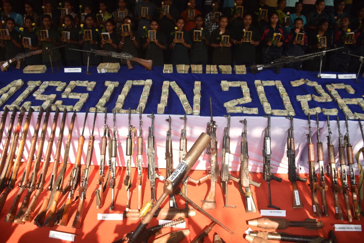 पूनर्वास करने वाले माओवादी कैडरों से प्राप्त सूचना तथा अन्य आसूचना के आधार पर सुरक्षा बलों द्वारा कार्रवाई करते हुए AK-47, INSAS, LMG, BGL सहित कुल 101 घातक हथियारों की बरामदगी विभिन्न डम्पों से की गई, जो नक्सल विरोधी अभियानों की एक महत्वपूर्ण उपलब्धि है।