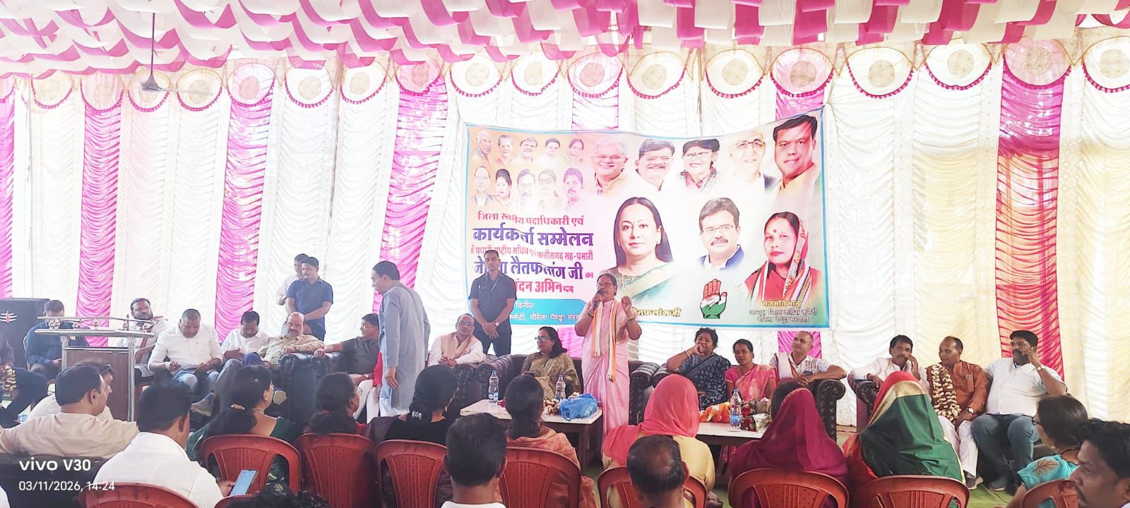 बैठक का संचालन पुष्पराज सिंह ने किया। आभार प्रदर्शन राकेश मसीह ने किया कार्यक्रम में जिले भर से आए कांग्रेस पदाधिकारियों एवं कार्यकर्ताओं की उल्लेखनीय उपस्थिति रही। अंत में सभी ने संगठन को और अधिक मजबूत बनाने तथा कांग्रेस की नीतियों को जन-जन तक पहुंचाने का संकल्प लिया। ख़ुशबू केशरवानी ने कांग्रेस पार्टी की रीति नीति से प्रभाव होकर प्रवेश किया कार्यक्रम में प्रमुख रूप से विधायक प्रतिनिधि पंकज तिवारी, राकेश मसीह, रमेश साहू, मुद्रिका सर्राटी हरीश राय, गुलाब राज, नारायण शर्मा, ब्लॉक अध्यक्ष प्रशांत श्रीवास, बलबीर सिंह क़रसायल, दया वाकरे, मूलचंद कुशराम वीरेंद्र सिंह बघेल, आलोक शुक्ला, रियांश सोनी नितेश साहू,अमोल पाठक, पवन केशरी शिवांश दुबे सुफियान अंसारी,संतोष मरावी राहुल नागेश रामरतन पेन्द्रो अमित सोनी चंद्रभान मरावी, शैलेंद्र यादव विनय चौबे, रेखा तिवारी, सुनीता तीमोंथी, मदन सोनी, मोती चंद जैन, मालती वाकरे, खुशबू केसरवानी मंजू सिंह, श्वेता मिश्रा, गिरिजा रानी पोटाम, सुमित्रा साहू, कृष्णा पटेल मुद्रिका सिंह ,बाला कश्यप, लालचंद सोनवानी, आशीष अग्रवाल, यश शर्मा, निलेश गुर्जर,जानकी खुसरो, अवधेश गुर्जर, मूलचंद कुशराम, शंकर सिंह कंवर, लालबहादुर सिंह, शुलेंद्र यादव हेमनाथ सर्राती संतोष मलेय्या, बलदेव यादव शांति पोर्ते, अमित कुमार सोनी, अनुज ताम्रकार, मोहम्मद सद्दाम,सेमलाल रघुवंशी, रवि राय, निलेश गुर्जर, तेज राजपूत गदेश मार्को भूरा यादव सुंदर सिंह दादूराम सिंह व अन्य कार्यकर्ता उपस्थित थे I