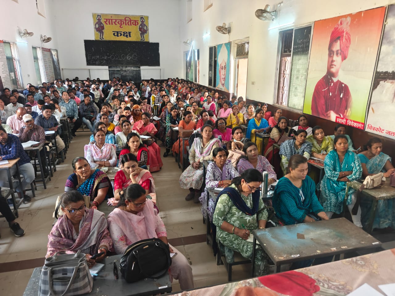 जगदलपुर। विकासखंड जगदलपुर के 5वीं 8वीं केंद्रीकृत परीक्षा अंतर्गत नियुक्त समस्त केंद्राध्यक्षों की बैठक जगतू माहरा उच्चतर माध्यमिक विद्यालय जगदलपुर में आयोजित की गई। केंद्राध्यक्षों को केंद्रीकृत परीक्षा के सफल संचालन हेतु आवश्य दिशा निर्देश दिए गए। इस अवसर पर कक्षा 5वीं के कुल 265 एवं कक्षा 8वीं के कुल 174 केंद्राध्यक्षों के अलावा विकासखंड जगदलपुर के समस्त संकुल समन्वयक भी उपस्थित रहे। जगदलपुर के खंड शिक्षा अधिकारी अनिल दास ने बैठक की अध्यक्षता की एवं केंद्राध्यक्षों को परीक्षा को निर्बाध रूप से संचालित करने हेतु आवश्यक दिशानिर्देश दिए। उनके साथ सहायक विकासखंड शिक्षा अधिकारी जगदलपुर राजेश गुप्ता ने भी अपने अनुभव साझा किए। बैठक में प्रशिक्षक के रूप में पंकज जोशी, शरद श्रीवास्तव एवं विवेक राय मौजूद रहे। यह जानकारी विकासखंड जगदलपुर के 5वीं 8वीं केंद्रीकृत परीक्षा प्रभारी विवेक राय ने दी।