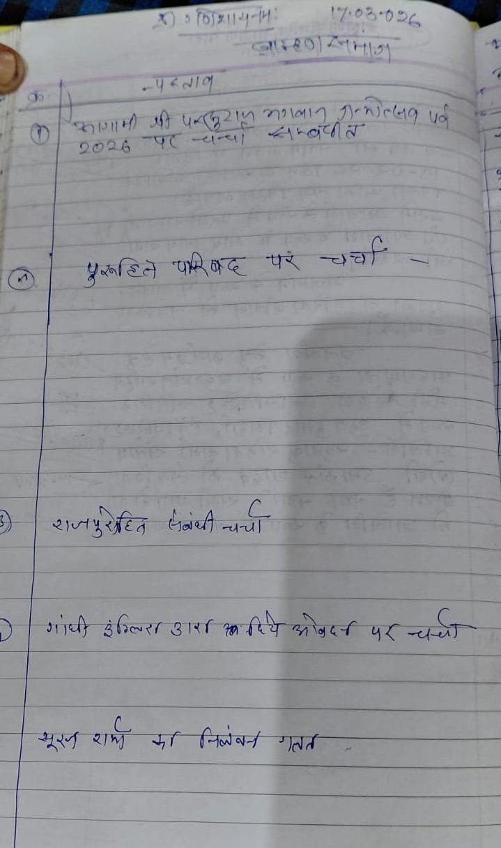 इस बैठक में अध्यक्ष प्रदुम शर्मा सचिव तिलक शर्मा कोषाध्यक्ष सचिन शर्मा सहसचिव सूरज शर्मा