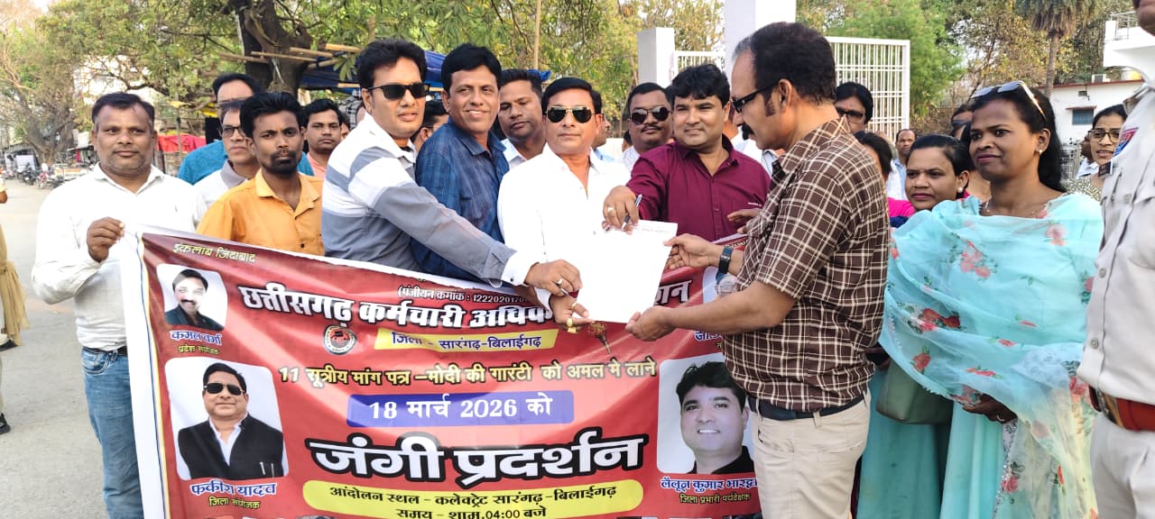 लक्ष्मी नारायण लहरे/सारंगढ़: नवरात्रि के पूर्व छत्तीसगढ़ कर्मचारी-अधिकारी फेडरेशन के प्रांतीय आह्वान पर जिला सारंगढ़-बिलाईगढ़ के समस्त विभागों के कर्मचारियों और अधिकारियों ने अपनी 11 सूत्रीय मांगों को लेकर सारंगढ़ कलेक्टरेट में भव्य प्रदर्शन किया।यह प्रदर्शन कर्मचारियों की एकजुटता और अपने अधिकारों के प्रति दृढ़ संकल्प का प्रतीक रहा। प्रदर्शन के बाद छत्तीसगढ़ के मुख्यमंत्री एवं मुख्य सचिव के नाम ज्ञापन प्रशासन के माध्यम से सौंपा गया। इस अवसर पर विभिन्न विभागों के कर्मचारी-अधिकारी, शिक्षक संगठनों के पदाधिकारी और सदस्य बड़ी संख्या में उपस्थित रहे।