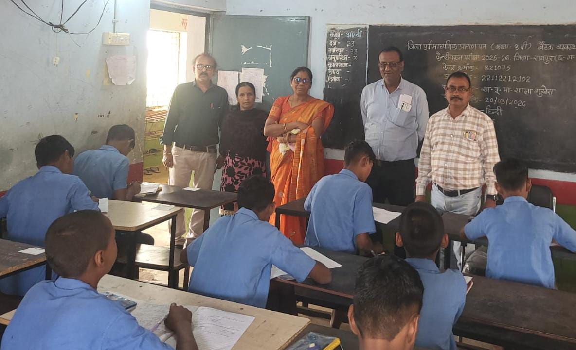 आरंग / स्कूली शिक्षा की गुणवत्ता और परीक्षाओं की शुचिता बनाए रखने के उद्देश्य से जिला शिक्षा अधिकारी रायपुर, हिमांशु भारतीय के मार्गदर्शन एवं विकासखंड शिक्षा अधिकारी दिनेश शर्मा के निर्देशन में आरंग विकासखंड में कक्षा 5वीं एवं 8वीं की केंद्रीयकृत परीक्षाओं का सुचारू संचालन किया जा रहा है। परीक्षाओं की पारदर्शिता सुनिश्चित करने के लिए विशेष निरीक्षण टीमों द्वारा लगातार केंद्रों का दौरा किया जा रहा है।