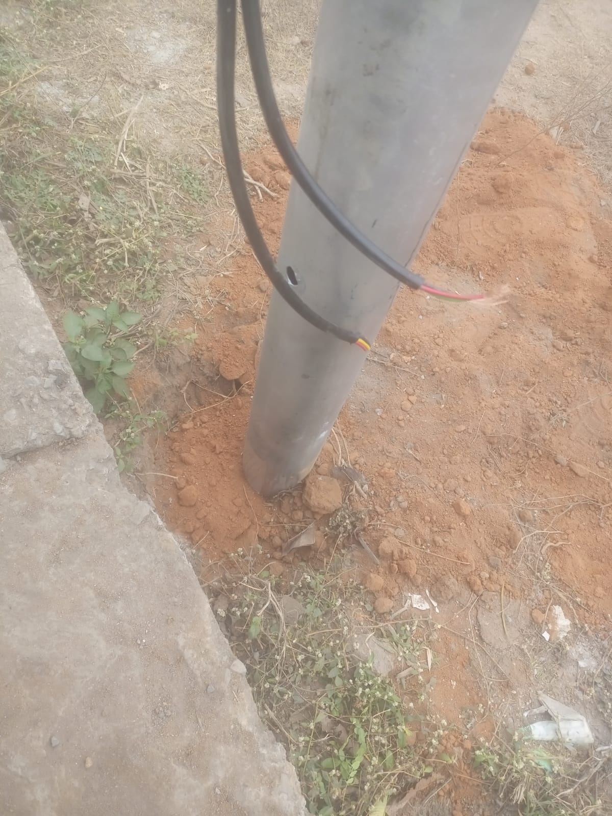 01. ​कमजोर नींव (No PCC):- नियमों के विरुद्ध खंभों के आधार में कंक्रीट (PCC) नहीं डाला जा रहा है जिससे तेज हवा या बारिश में पोल गिरकर जान-माल की हानि कर सकते हैं ।
