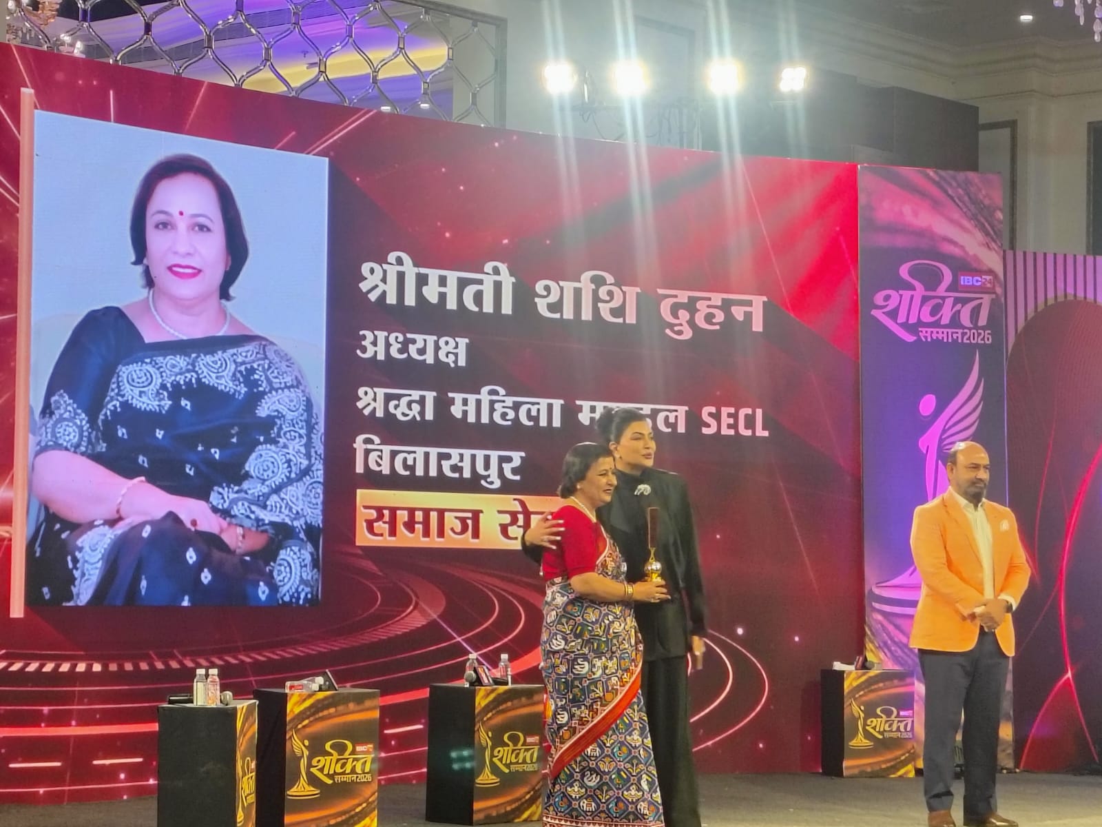 महिला सशक्तिकरण और सामाजिक उत्थान के क्षेत्र में निरंतर कार्य कर रही श्रद्धा महिला मंडल को प्रतिष्ठित आईबीसी24 ‘शक्ति सम्मान’ 2026 से सम्मानित किया गया है। यह सम्मान सुप्रसिद्ध अभिनेत्री, पूर्व मिस यूनिवर्स एवं समाजसेविका सुश्री सुष्मिता सेन के करकमलों से प्रदान किया गया, जिसे मंडल की अध्यक्षा एवं एसईसीएल परिवार की प्रथम महिला श्रीमती शशि दुहन ने ग्रहण किया।