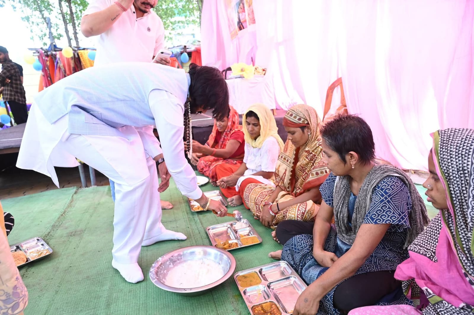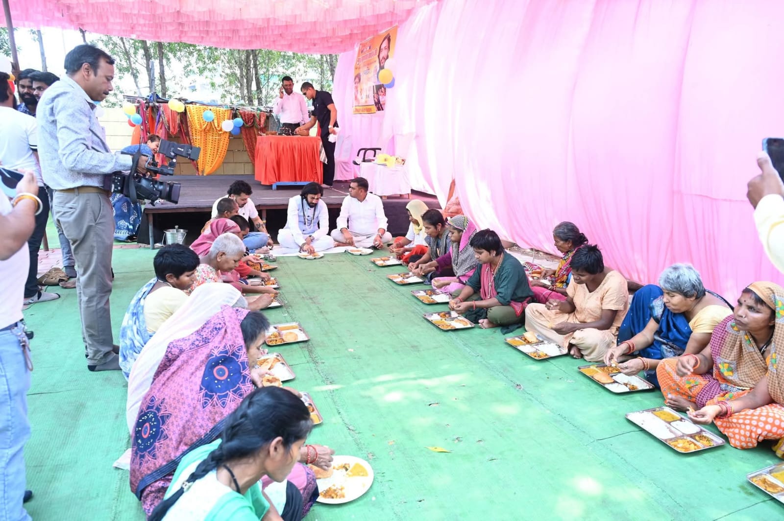भिक्षुक पुनर्वास केंद्र में जमीन पर बैठकर किया भोजन