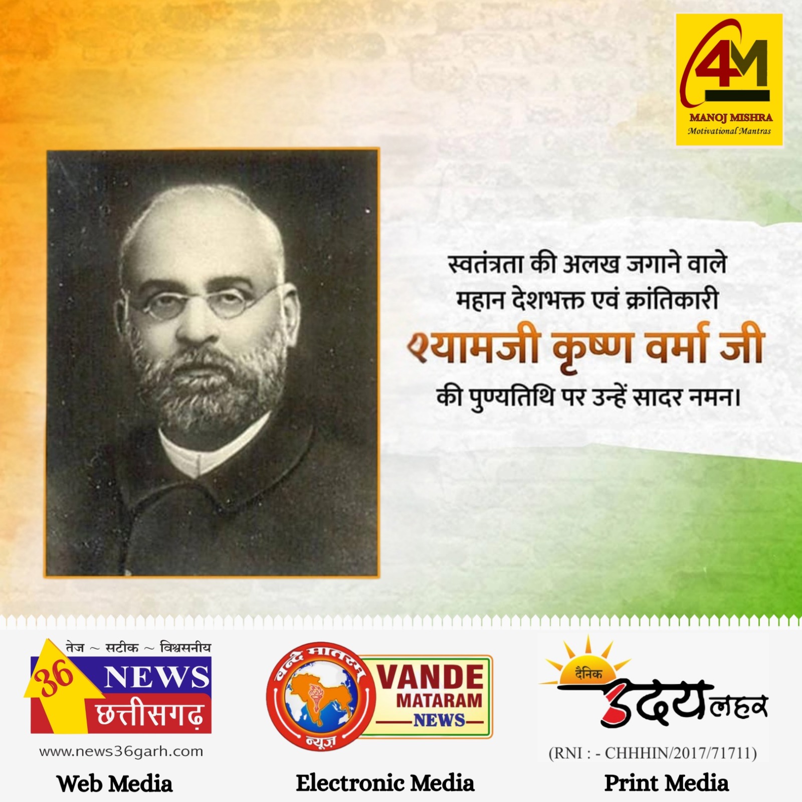 महान क्रांतिकारी, प्रखर राष्ट्रवादी और भारतीय स्वतंत्रता संग्राम के अग्रदूत श्यामजी कृष्ण वर्मा जी की पुण्यतिथि पर प्रेरणादायक श्रद्धांजलि