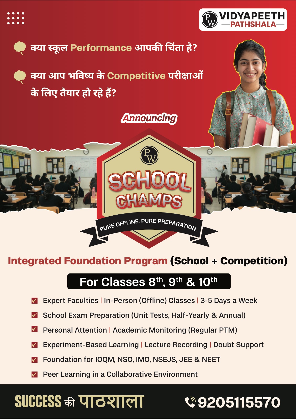 जिसमें स्कूल पढ़ाई के साथ-साथ Olympiad और Foundation (JEE/NEET) की तैयारी कराई जाएगी।