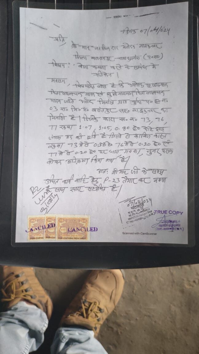 मामला बलरामपुर जिले के वाड्रफनगर विकासखंड अंतर्गत ग्राम पंचायत कुंदी का है। यहां के ग्रामीण कृष्ण कुमार यादव का आरोप है कि वे वर्षों से “छोटे झाड़” की भूमि पर काबिज होकर खेती कर रहे थे। उनका कहना है कि वर्ष 2023 में शासन द्वारा उनसे हर्जाना भी लिया गया और राजस्व अभिलेख (खसरा) में उनका नाम दर्ज कर कब्जा मान्य किया गया।
