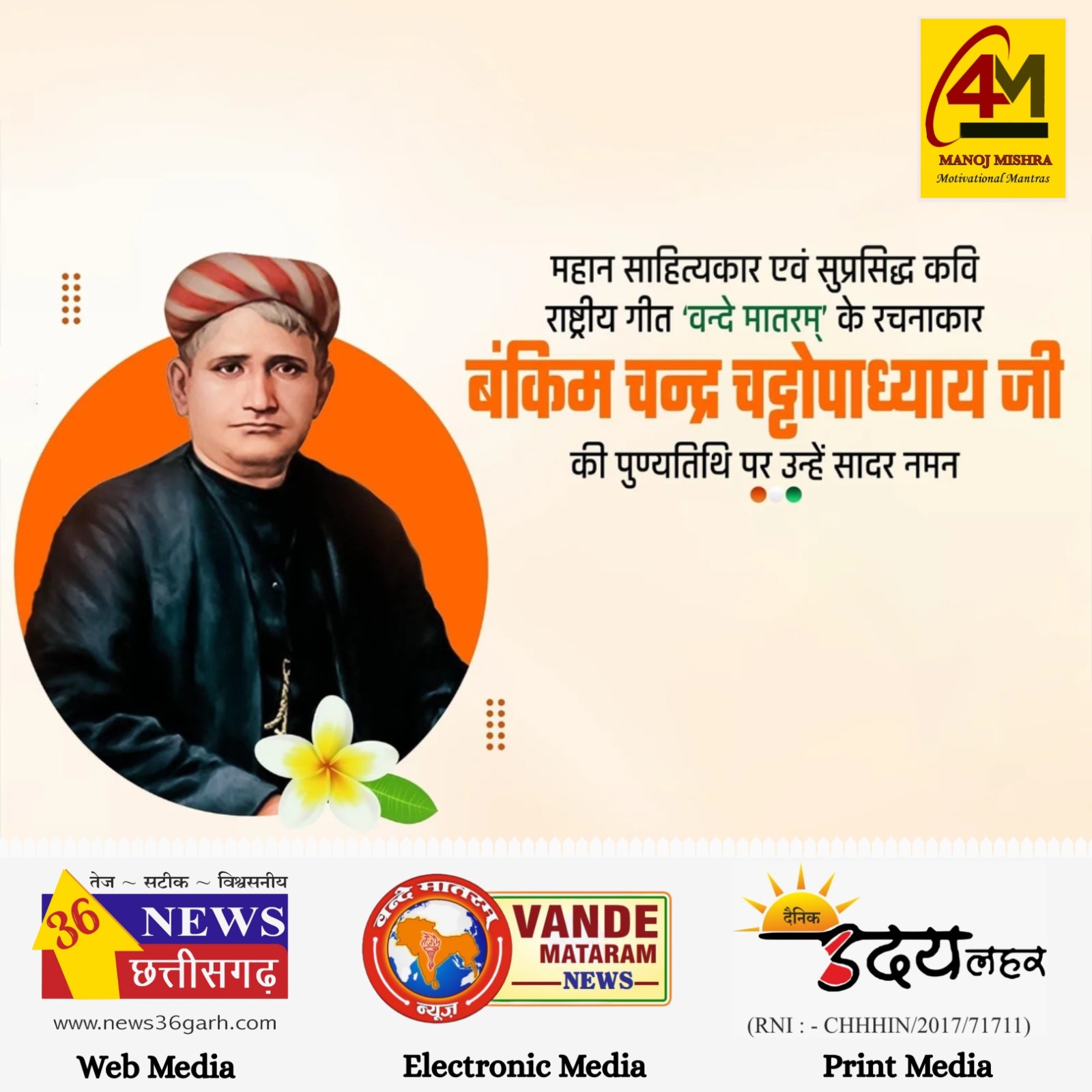 भारत के महान साहित्यकार, राष्ट्रभक्ति के प्रेरणास्रोत एवं “वंदे मातरम्” के रचयिता बंकिमचंद्र चट्टोपाध्याय की पुण्यतिथि पर श्रद्धांजलि