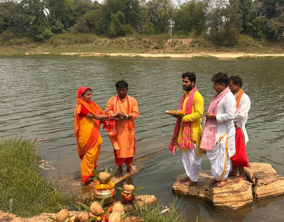 इस अवसर पर पूरा ग्राम क्षेत्र जय श्री राम और पवनपुत्र हनुमान के जयकारों से गुंजायमान होता रहा, जिससे संपूर्ण वातावरण में एक अपूर्व आध्यात्मिक ऊर्जा का संचार हुआ। सांसद महेश कश्यप ने प्रथम दिवस अपने परिवार के साथ मिलकर बस्तर की जीवनदायिनी और प्राचीन इंद्रावती नदी के जल सहित देश की कुल 21 पवित्र नदियों के जल से प्रभु बजरंगबली की नव स्थापित प्रतिमा का महा जलाभिषेक किया। धर्म और आस्था की इस पावन बेला में प्रदेश के केबिनेट मंत्री एवं वरिष्ठ मार्गदर्शक केदार कश्यप की उपस्थिति थी। मंत्री केदार कश्यप ने प्रभु का आशीर्वाद लिया और सांसद के परिवारजनों से आत्मीय एवं स्नेहिल भेंट की और शुभकामनाएं दी।