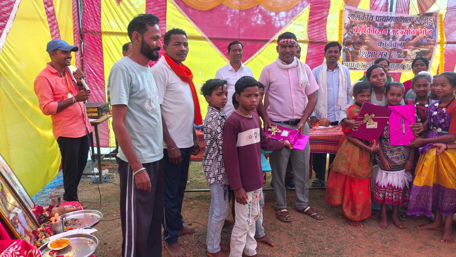 बस्तर। बस्तर विकासखंड के संकुल केंद्र कुंडगुड़ा के अंतर्गत संचालित प्राथमिक शाला खैरगुड़ा का परिसर शुक्रवार को एक ऐतिहासिक और भावपूर्ण दिन का साक्षी बना। विद्यालय प्रांगण में कक्षा पांचवीं के बच्चों के लिए विदाई समारोह के साथ न्यौता भोज का भव्य और गरिमामय आयोजन किया गया। यह आयोजन केवल एक औपचारिक रस्म अदायगी तक सीमित नहीं रहा बल्कि शिक्षा, संस्कार और सामुदायिक सहभागिता का जीवंत उत्सव बन गया, जिसमें जनप्रतिनिधियों से लेकर आम ग्रामीणों तक की उत्साहपूर्ण और सक्रिय भागीदारी देखने को मिली। पूरे परिसर में उल्लास, अपनापन और भावुकता का अद्भुत संगम दिखाई दिया।
