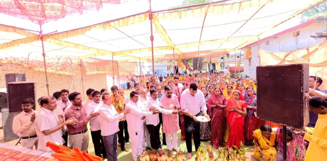 डुगेश्वर संजू साहू/भवानीपुर (पलारी)। नगर पंचायत पलारी में साहू समाज की आराध्य देवी भक्त माता कर्मा जयंती श्रद्धा और उत्साह के साथ धूमधाम से मनाई गई। इस अवसर पर भव्य कलश यात्रा निकाली गई, जिसमें बड़ी संख्या में समाज के महिला, पुरुष एवं युवाओं ने भाग लिया। कलश यात्रा नगर के प्रमुख मार्गों से होते हुए निकाली गई, जिससे पूरा वातावरण भक्तिमय और उत्सवी बना रहा।
