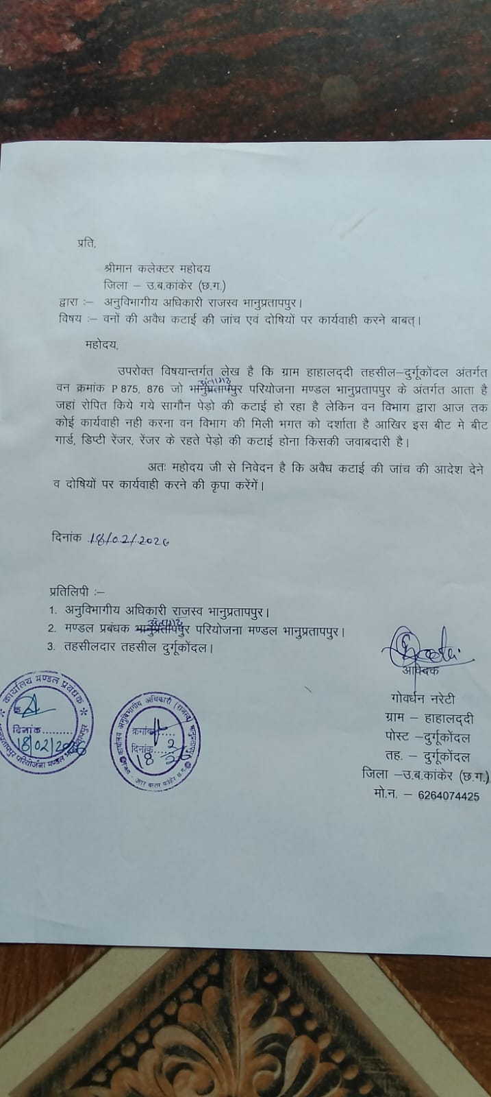 भानुप्रतापपुर (अंतागढ़ परियोजना मंडल) के हाहालद्बी गांव में वन विकास निगम और वन विभाग के अधिकारियों की कार्यशैली को लेकर ग्रामीणों में नाराजगी बढ़ गई है।