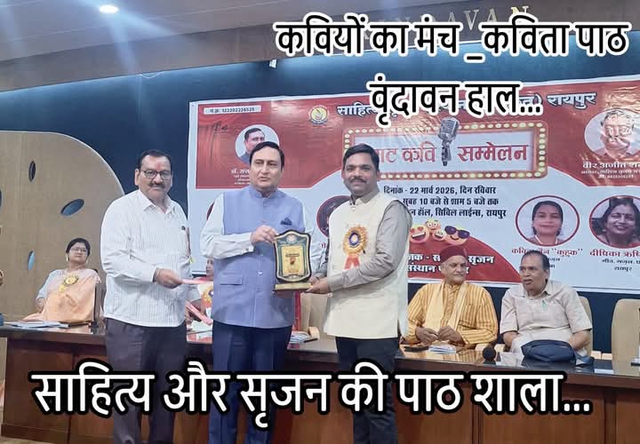 रायपुर । रायपुर साहित्य सृजन संस्थान द्वारा लगातार आयोजित की जा रही 44वीं मासिक काव्य संध्या एवं सम्मान समारोह का आयोजन 19 अप्रैल शनिवार को दोपहर 3 बजे से शाम 7 बजे तक वृंदावन हॉल, सिविल लाइन्स, रायपुर में आयोजन रखा गया है ।