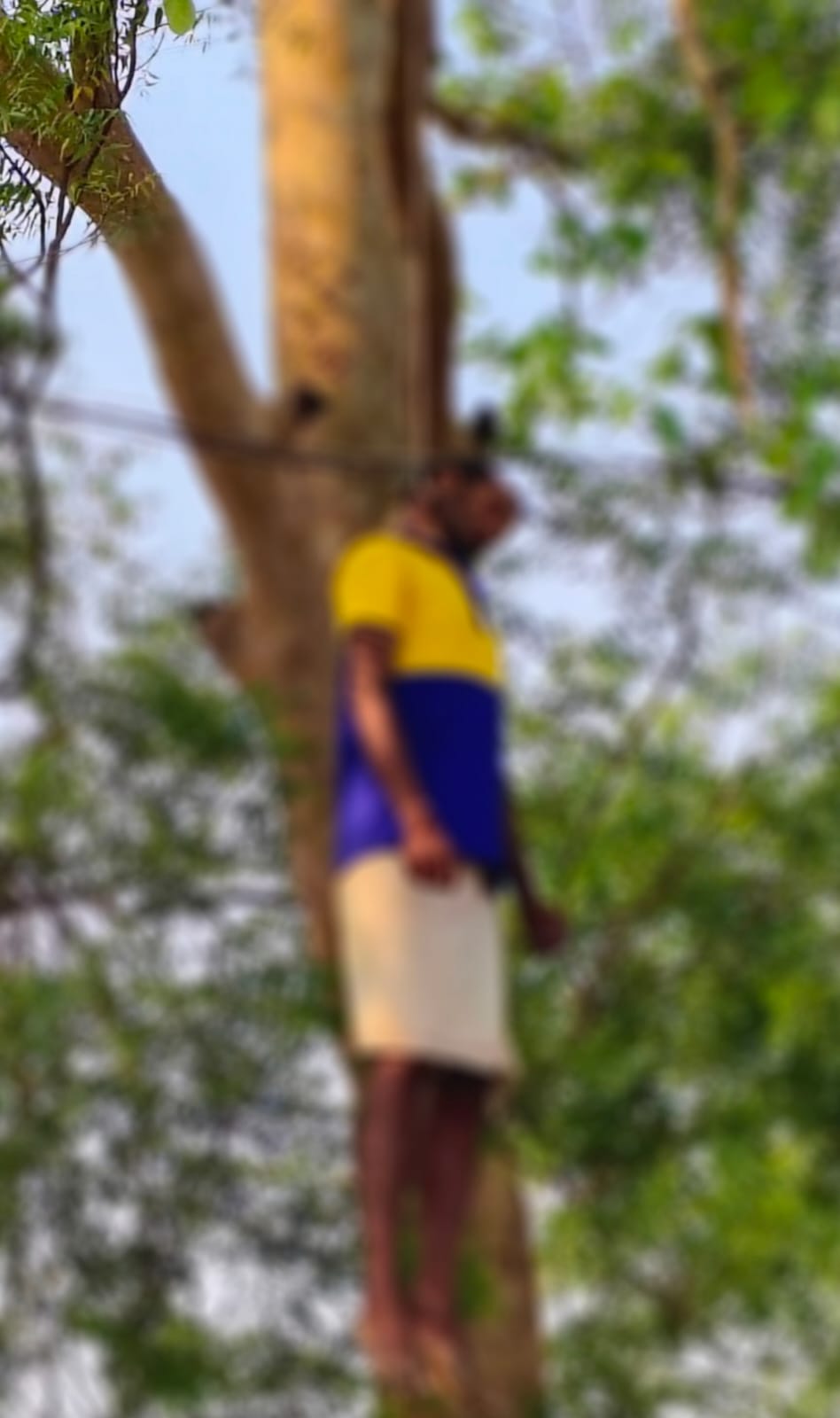 पेड़ पर लटकता मिला युवक का शव। क्षेत्र में शोक की लहर
