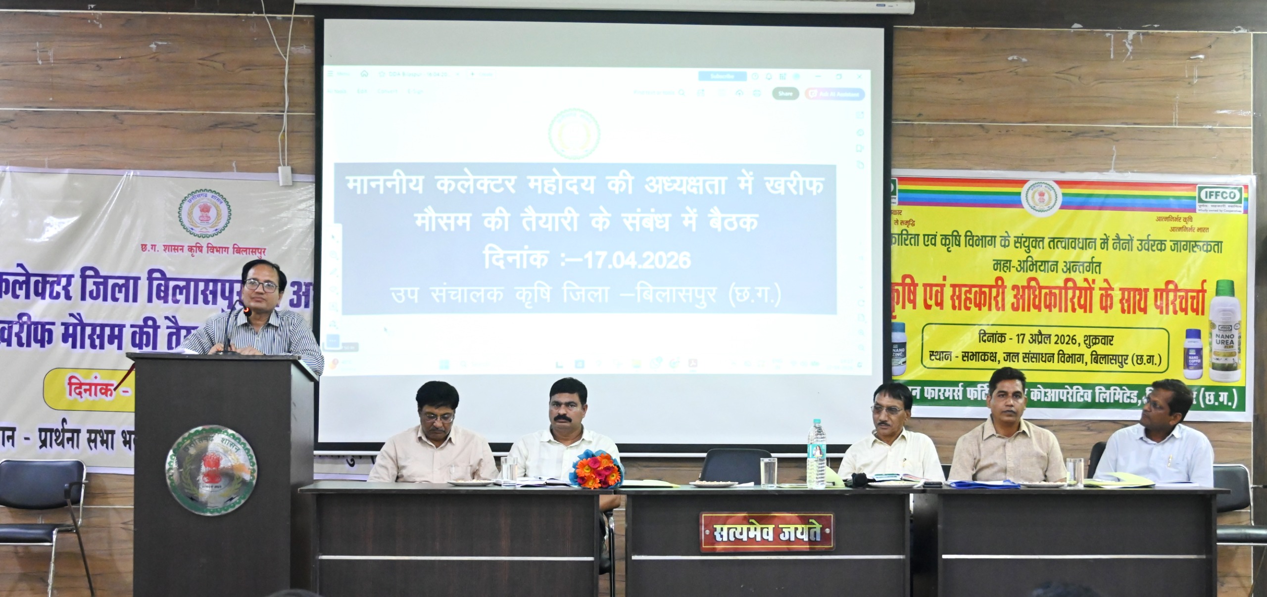 बिलासपुर, 17 अप्रैल 2026/कलेक्टर श्री संजय अग्रवाल की अध्यक्षता में प्रार्थना सभा भवन में कृषि विभाग के अधिकारियों एवं जिले की सेवा सहकारी समितियों के प्रबंधकों की संयुक्त मैराथन समीक्षा बैठक आयोजित की गई। बैठक में खरीफ 2026 की तैयारियों, उर्वरक-बीज की उपलब्धता, वितरण व्यवस्था एवं विभिन्न किसान हितैषी योजनाओं की विस्तार से समीक्षा की गई।