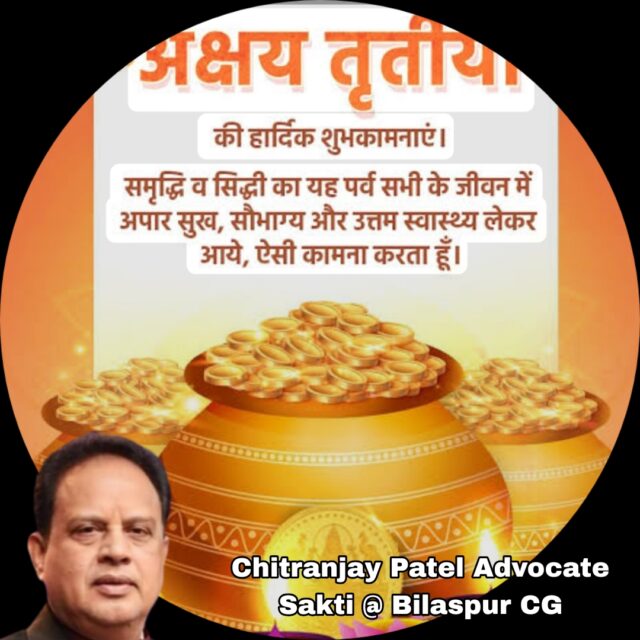 विदित हो कि अक्षय तृतीया के दिन ही बद्रीनाथ धाम के द्वार खुलते हैं। इस प्रकार विभिन्न मान्यताओं के संगम पर्व के रूप में स्थापित सनातन धर्म संस्कृति का अद्वितीय और अद्भुत पल अक्षय तृतीया इस साल रविवार १९ अप्रेल को प्रातः १०.४९ से सोमवार २० अप्रेल को सुबह ७.२७ तक है जिस दरमियान हम एक नई कार्य योजना पर काम की शुरुवात कर सकते हैं, इस बात की चर्चा करते हुए हिंदू जागरण मंच जिला प्रमुख एवं उच्च न्यायालय अधिवक्ता चितरंजय सिंह पटेल ने इस महत्वपूर्ण बेला पर सभी सनातन धर्मावलंबी को शुभकामनाएं देते हुए कहा कि भगवान विष्णु और माता लक्ष्मी की कृपा से आप सभी अक्षय सुख समृद्धि प्राप्त करें ।