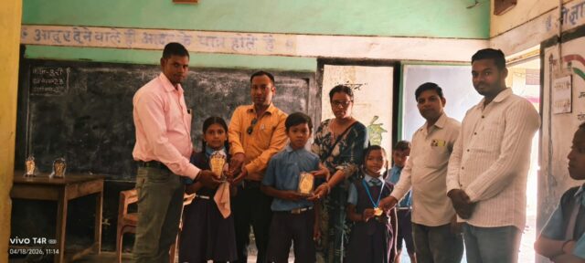 आरंग/ प्राथमिक शाला सेमरिया में बच्चों को प्रोत्साहित करने व पढ़ाई के प्रति रुचि जगाने, प्रतिस्पर्धा की भावना जगाने व बच्चों में छुपी प्रतिभा को निखारने के लिए शिक्षक एस एल देवांगन ने बच्चों को पुरस्कृत करने की योजना बनाई।इसी क्रम में बच्चों को मोमेंटो व मेडल से पुरस्कृत किया गया जिससे बच्चों में खुशी की लहर दौड़ गई। बच्चे पुरस्कृत होकर फूले नहीं समा रहे थे।साथ ही पालकों ने भी शिक्षक श्री देवांगन का आभार व्यक्त किया। पुरस्कृत होने वाले टाॅपर विद्यार्थियों में कक्षा चौथी में याचिका साहू प्रथम, उर्मी विश्वकर्मा द्वितीय,लोमश कुमार यादव तृतीय, कक्षा तीसरी में भूमिका सिन्हा प्रथम, हेमंत कुमार निषाद द्वितीय,वाणी दीवान तृतीय,कक्षा दूसरी में ओम साहू प्रथम,सानवी देवांगन द्वितीय, संतोषी देवांगन तृतीय व कक्षा पहली में युवांशी साहू प्रथम, लक्ष्य कुमार सिन्हा द्वितीय, कुणाल साहू तृतीय स्थान प्राप्त किया।इस अवसर पर सरपंच प्रतिनिधि खुमेश साहू,शाला प्रबंधन समिति के अध्यक्ष रुपेन्द्र सिन्हा, संकुल समन्वयक विश्राम प्रसाद बंजारे, रितु सोनी,शिक्षक सोहन लाल देवांगन एवं स्कूली छात्र -छात्राओं की उपस्थिति रही।शाला प्रबंधन समिति के अध्यक्ष ने सभी प्रतिभावान विद्यार्थियों को शुभकामना संदेश देते हुए उनके उज्जवल भविष्य की कामना किया। सरपंच प्रतिनिधि खुमेश साहू ने शिक्षक देवांगन का बच्चों के प्रति प्रेम देखकर व बच्चों को पुरस्कार देने के लिए आभार एवं धन्यवाद व्यक्त किया।